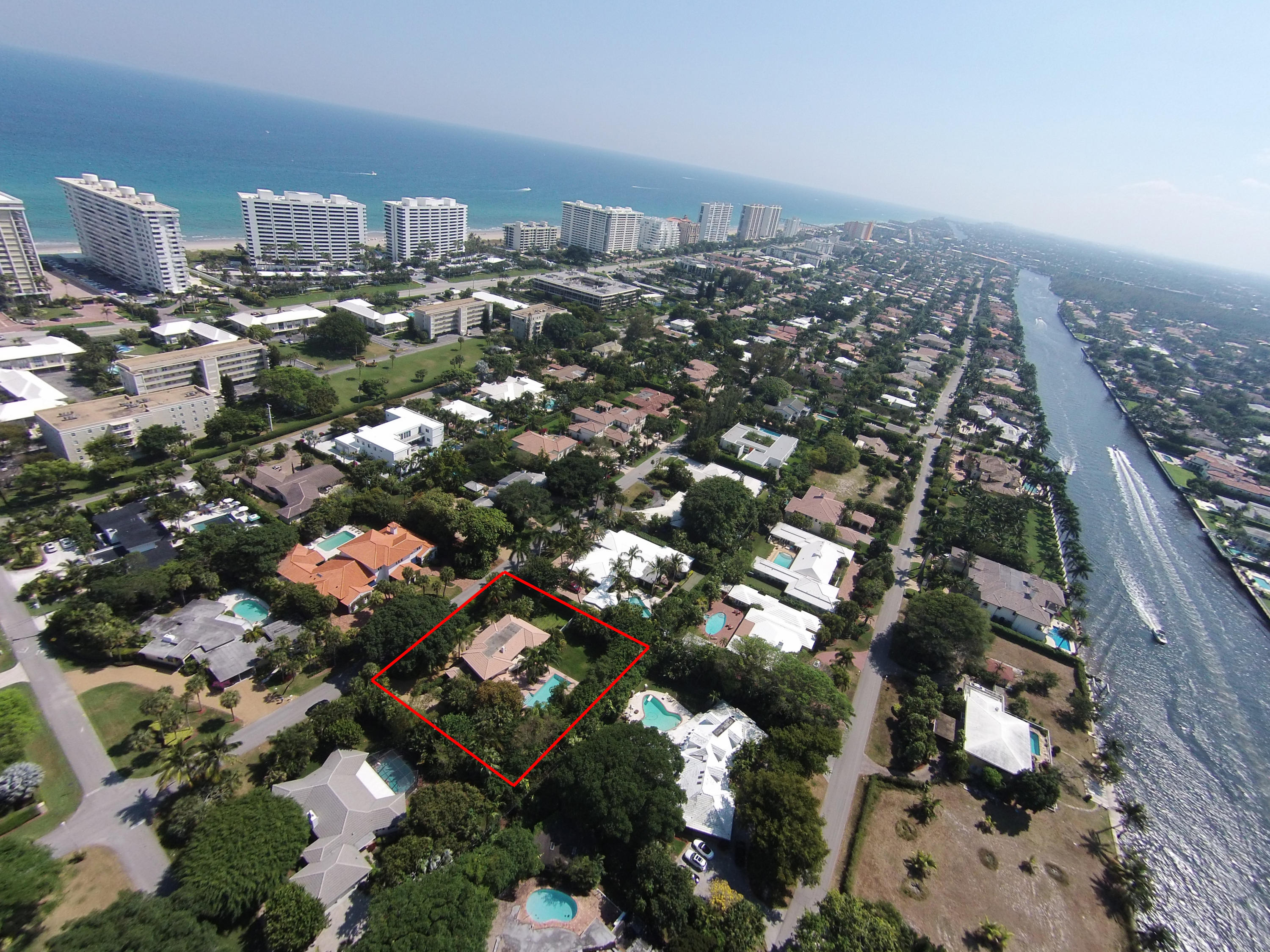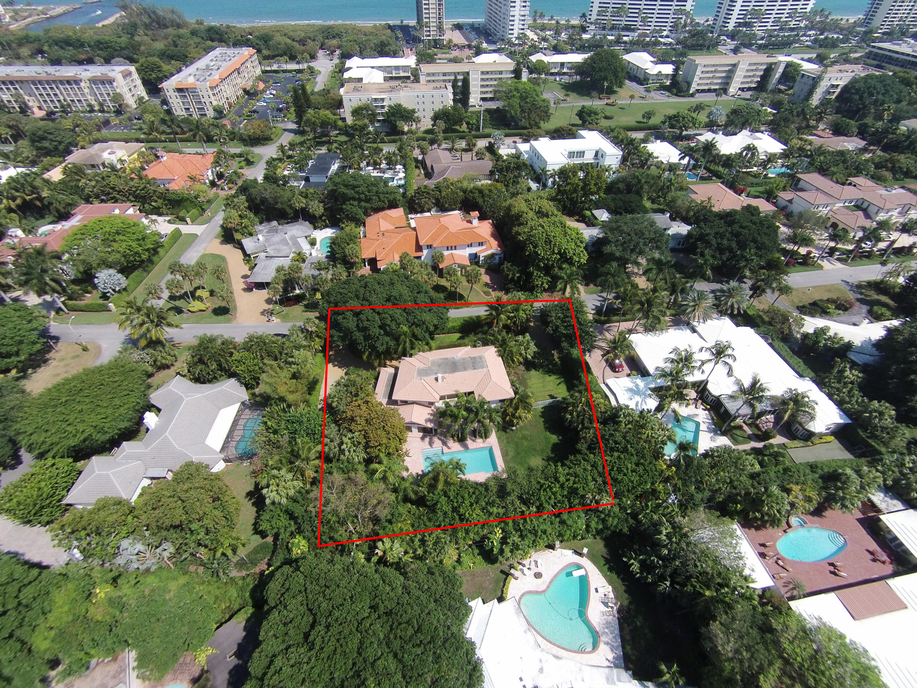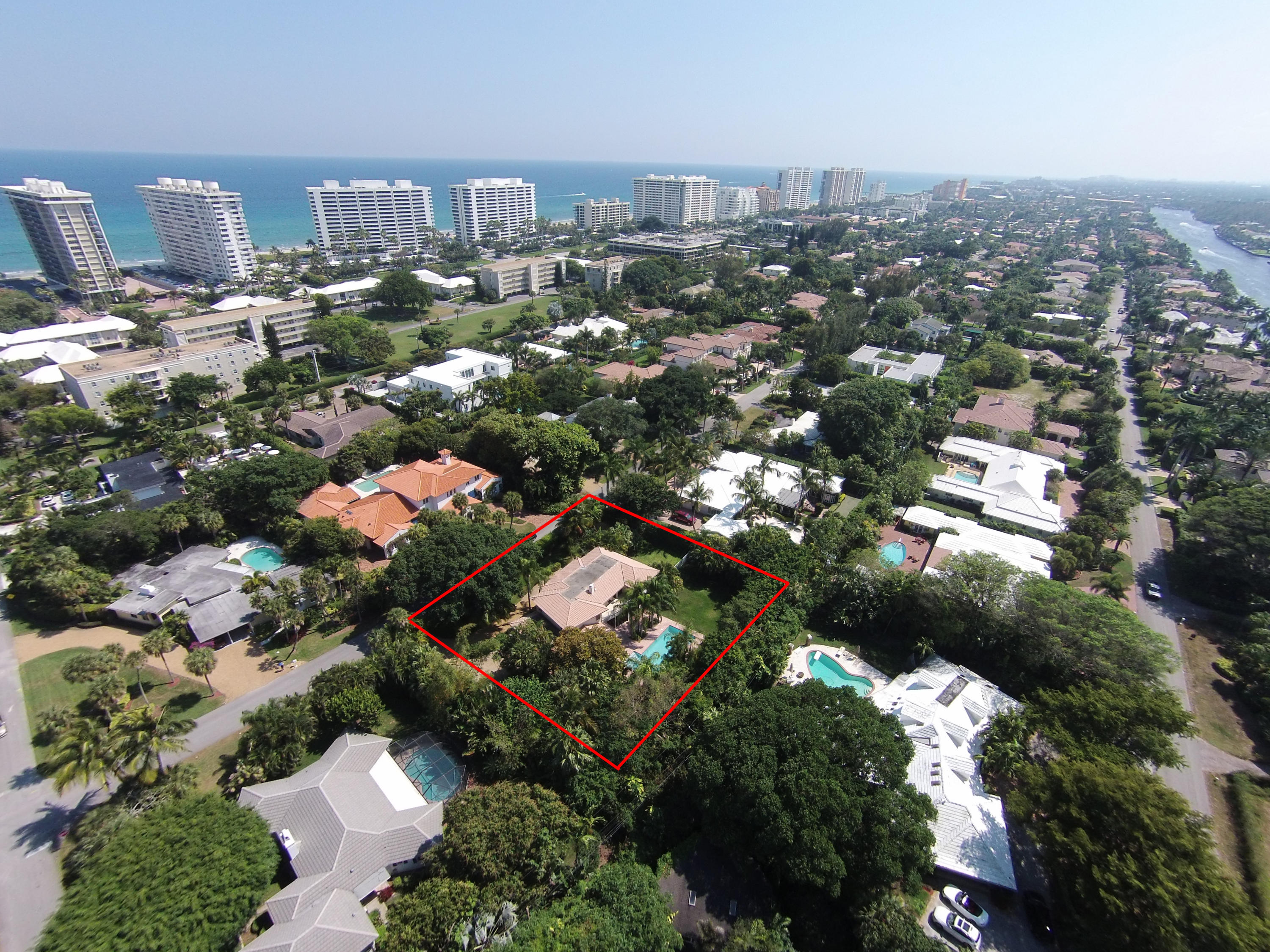 Fabulous ''Palm Beach'' inspired home on .61 Acres on highly sought after ''Cocoanut Road''. Home was completely renovated in 1986. Located only 2 blocks from the Beach and the Boca Resort in the Prestigious ''Estates Section'' with an added bonus of NO HOA Features 5 Bedrooms, open kitchen to family room, high ceilings in living room, Huge 40+/-foot pool and fantastic Huge Estate Sized tropical yard!! No HOA in this neighborhood!
