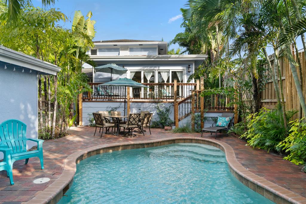 Key West style 1925 historic home in the Grandview Heights neighborhood. Lovingly restored and updated throughout. 3 bedrooms, and 2 baths. All newer windows, new electric system, gas appliances, including tank-less water heater. The house has been insulated with spray foam in the attic and crawl space, making for efficient and quiet living. All original hardwood floors, and a wood burning fireplace. The pool deck is lushly landscaped and private, with an electric heater. There is also a detached 2 car garage. The roof is less than 10 years old. Updated kitchen with granite counters and a gas range. The house is built on a CBS foundation with a basement area that provides access under the home. Currently the home is professionally managed as a vacation rental with future bookings/revenue