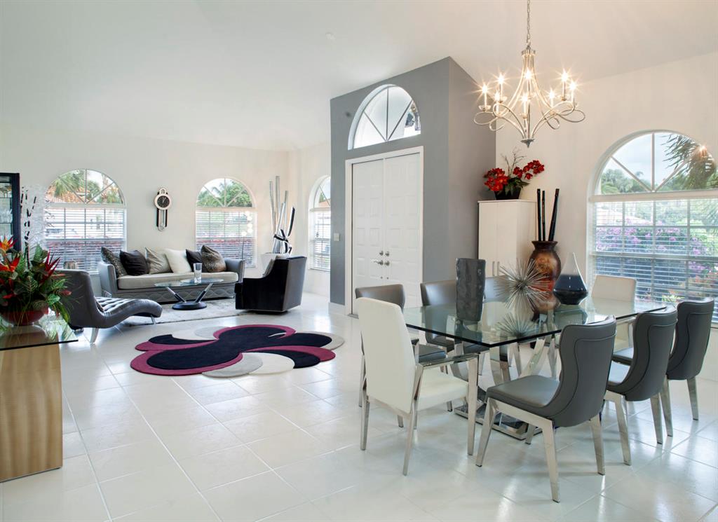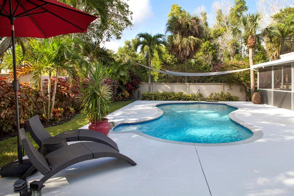 Nestled in an intimate community is a pristine 4 bedroom, 2.5 bath retreat on a private 10,000 sq. ft. lot. Curb appeal abounds with fresh exterior paint, trim and a stunning stone facade. The WOW factor extends to beautifully maintained topiary and tropical plantings. Step inside through double entry doors and experience soaring ceilings and contemporary architecture to include a new designer staircase. A sense of comfort is enhanced by a newly remodeled kitchen, first floor master suite and luxury master bath. The private patio features a screened porch, resort like pool area and sheltered grill. Ideally located in East Boca's A+ school district and close to everything.
