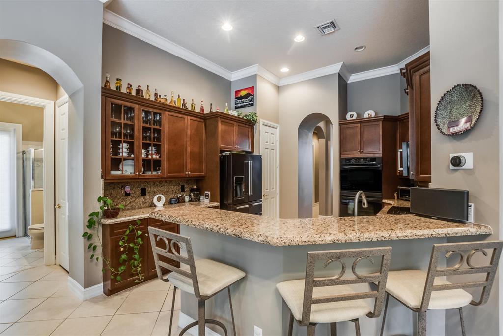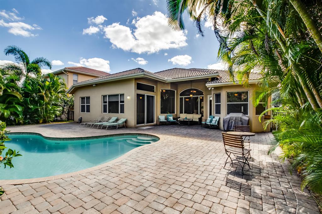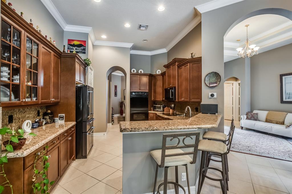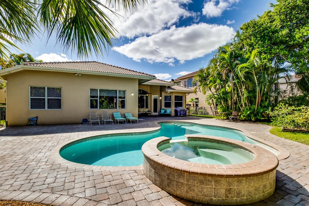 Modified Beaumont model with additional half bath off living areas. Entertain friends and family in the beautiful free form salt water pool with jacuzzi. Spacious master suite offers a sitting area, walk in closets, jacuzzi tub, double sinks and double entry shower. Popular 3 way split floor plan with bedrooms 2 & 3 sharing a ''jack & jill'' bathroom and bedroom 4 sharing a cabana bath. Great kitchen featuring 42'' cabinets, granite countertops, double ovens, stainless steel appliances and pantry.
