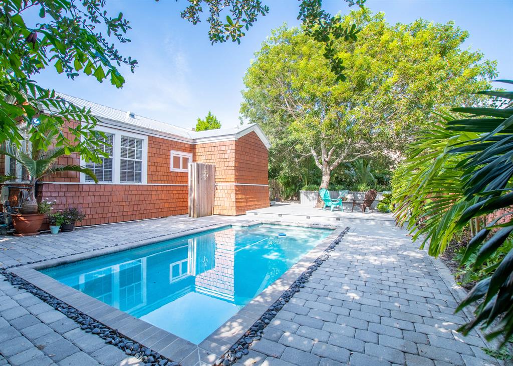 Renovated to perfection in the heart of Grandview Heights. 2 Bedroom, 2 bath home with 9 ft. ceilings, new baths, updated kitchen, and new roof. Walking distance to City Place and downtown. Cedar siding, new metal roof, nicely landscaped with a private pool deck. The floors are all original Dade county pine throughout w/ original fireplace. The kitchen cabinets are all faced with custom leaded glass inlays as is the front entry door. The laundry room is off the kitchen leading out to the pool deck. Mature trees surround the property along with a brick paver driveway providing plenty of off street parking. This home is in move-in condition.