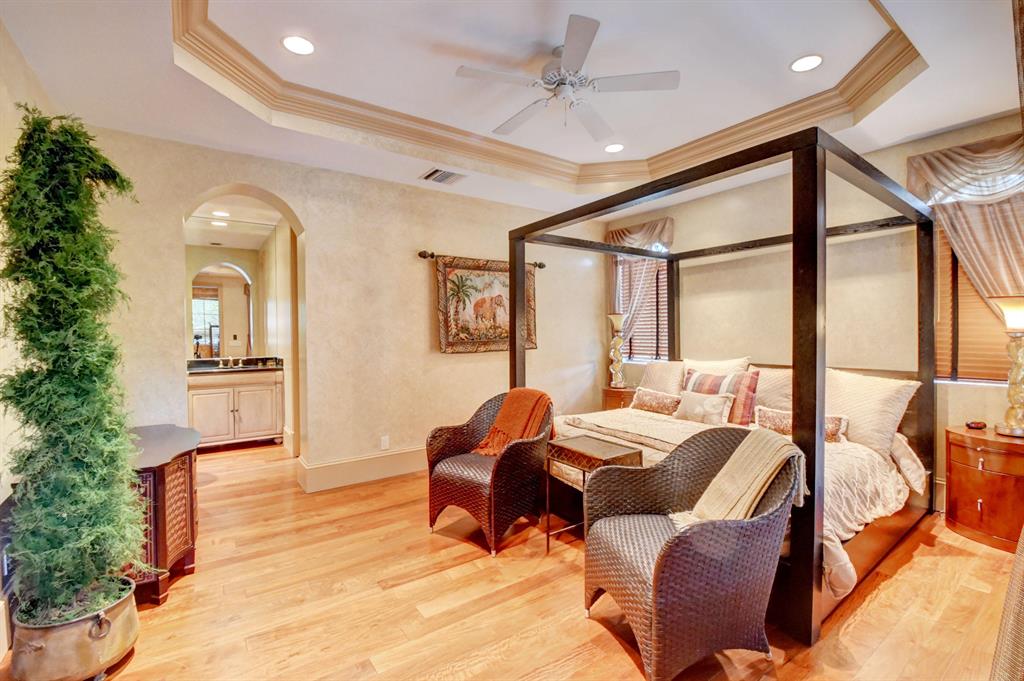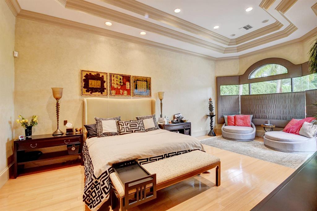 OPPORTUNITY TO LIVE IN A PRIVATE EXCLUSIVE GATED ENCLAVE. Lake views fill this magnificent estate of 5 BDs + library,loft,6 1/2 As & 3 car garage of fine craftsmanship & attention to detail.The Living Room offers a 2-sided hand carved marble fireplace,wet bar,wine room & wood ceiling.Master + office & additional bedroom are down.The entry rotunda features a stone wall & dramatic staircase to the 2nd floor with 3 BDs,3 BAs & enormous loft. Each bathroom is unique with a copper tub in the Master Suite.There are custom window treatments,closet design,crown moldings,smart home technology system & more!The spacious backyard offers an expansive patio with pool, spa, waterfall, grill ,grassy area & dock on the lake.Hurricane windows in front;shutters in rear.
