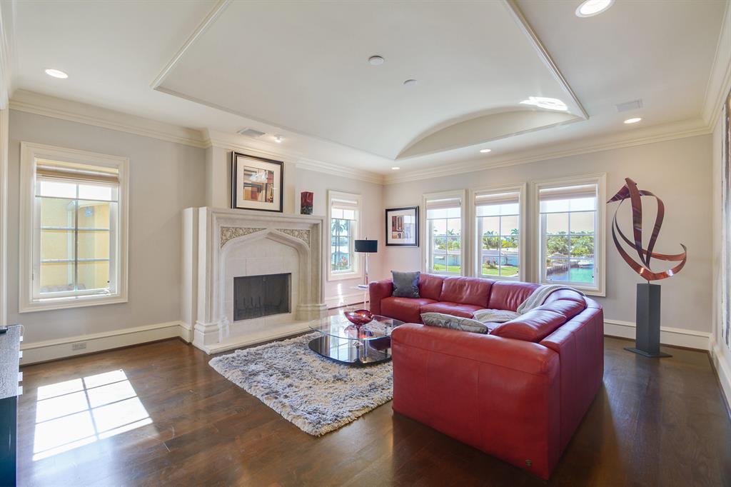 Extraordinary Mizner Inspired Estate with contemporary styling built by Richard Jones is located on prestigious Boca Harbour Island and a prime lot intersecting long-vista canals just West of the ICW. Enter this 5 bedroom, 6 1/2 baths custom residence thru a signature 10 foot glass and wrought iron door into a grand two story rotunda with sweeping staircase. Exquisite marble floors and woodwork craftsmanship are immediately apparent as you move into the living room, which overlooks the open pool, patio and water vistas. An open rich-wood paneled office opens thru French doors to a front patio, while across a column-lined walkway a spacious dining room opens to the covered lanai with entertainment barbecue area, pool, patio and water views. A transitional contemporary kitchen...see MORE
