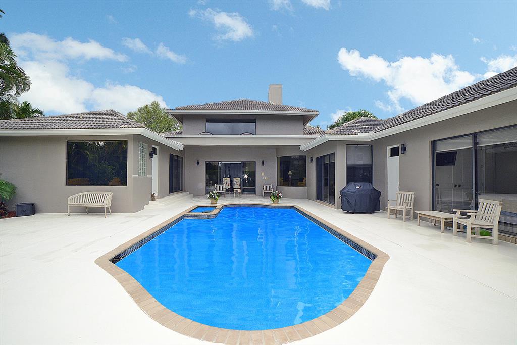 This contemporary home has been completely updated! This fabulous 5 bedroom 4.5 bath home with a three car garage has 24'' white porcelain floors throughout, beautiful large kitchen open to the family room, large master bedroom, lots of closet space and storage, and an amazing oversized back yard with lots of grass and a fenced in yard. These are just a few features of one of the very few updated homes in the award winning country club at Broken Sound. Call for your private showing you do not want to miss out on this well priced home!