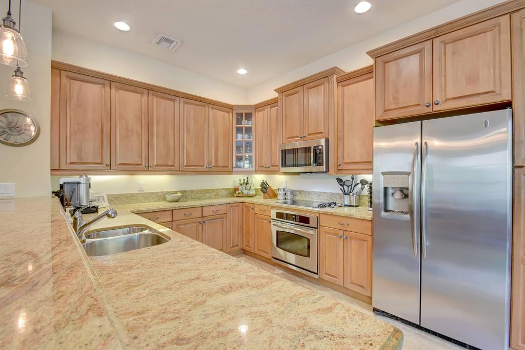 NO HOA DUES FOR 12 MONTHS! Seller will provide buyer a one year HOA credit at closing. A must see property minutes from downtown Delray and Boca Raton. Beautiful 2 story townhome feels like a single-family-home. Large great room with views of private back yard and marble finished patio. Premium wood cabinetry with additional work station in kitchen. Downstairs has office/guest suite with full bath. Upgraded wood stairs lead you to the 2nd floor landing (also wood floors) and 3 large bedrooms. Master bedroom has wood floors, with 2 walk in closets and large marble bath. French doors lead to a private terrace. All closets are outfitted for maximum storage. Lighting fixtures and fans have been selected to enhance the classic beauty of the home.
