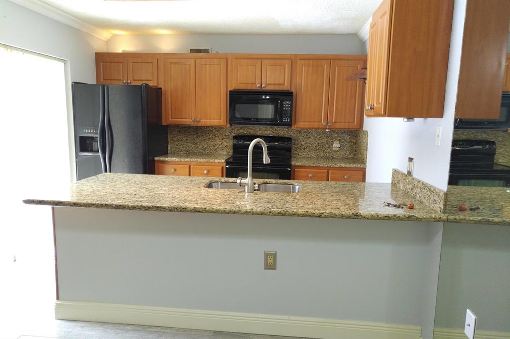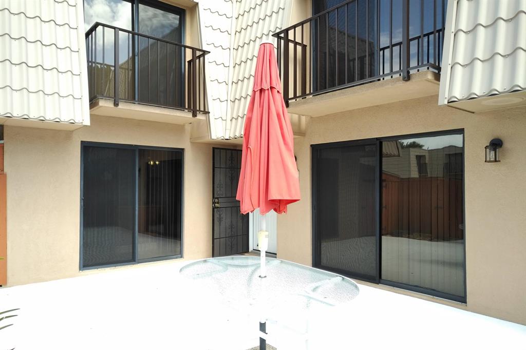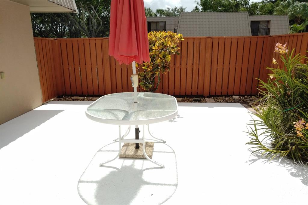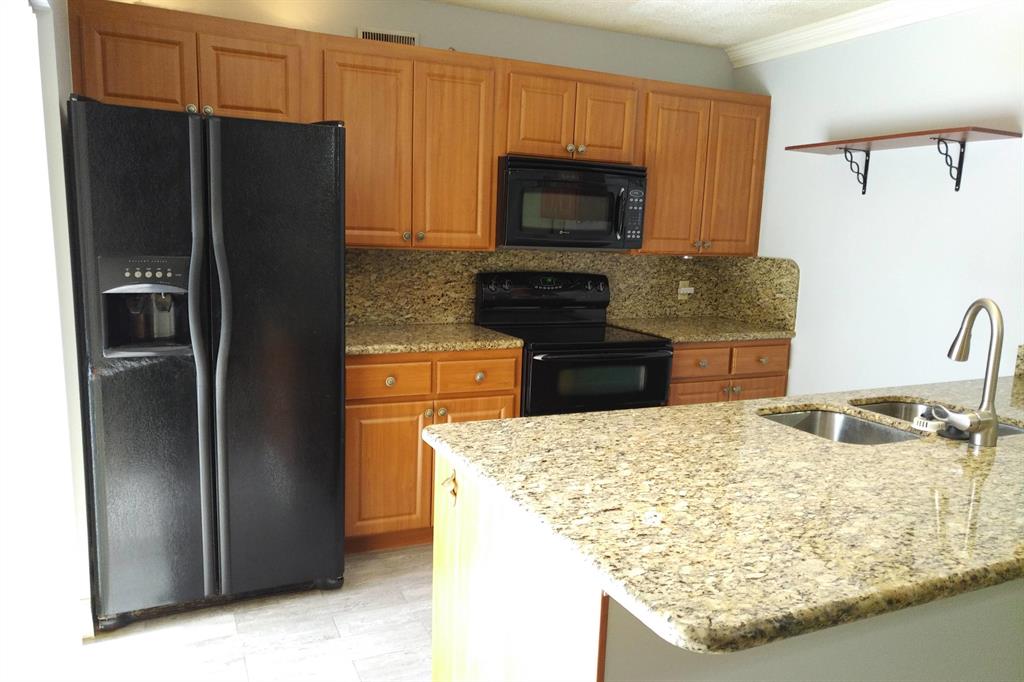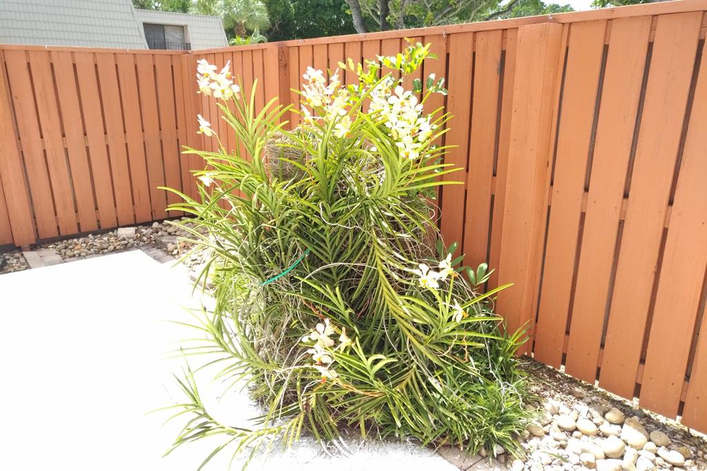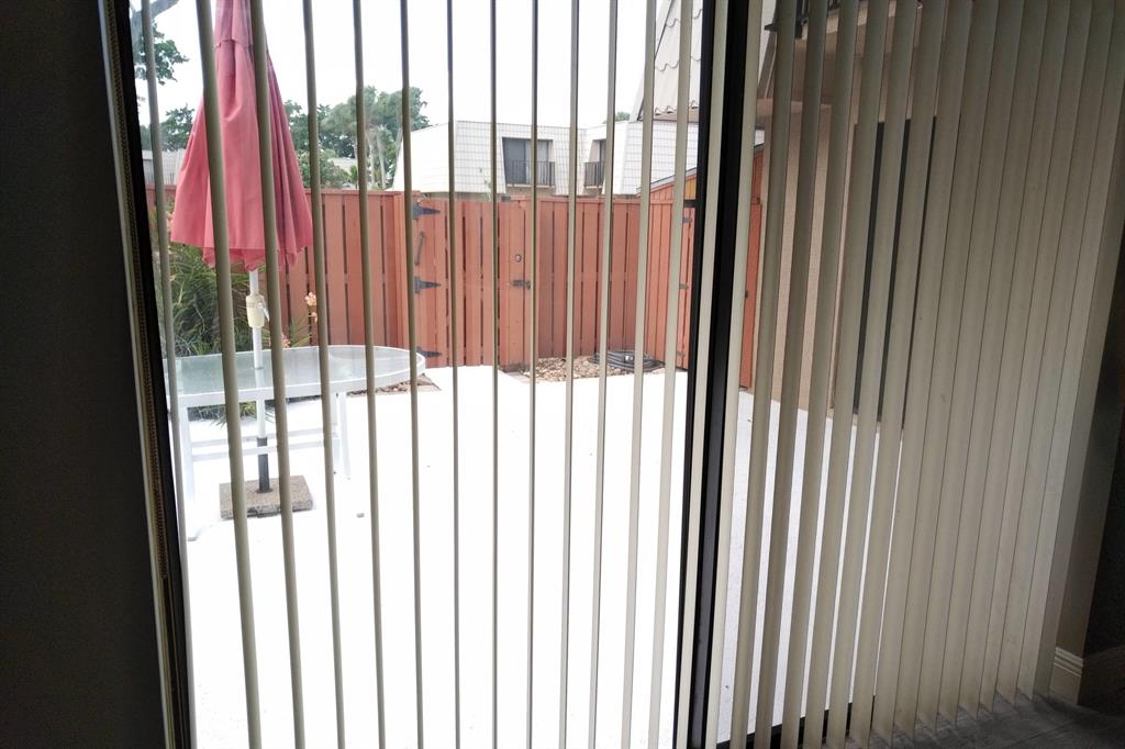 Beautifully updated unit with shaded view. Parking at your door. Cove molding, indirect lighting LR/Kit. New vertical blinds. Plantation shutters upstairs. Current fridge works but makes noise. Other appliances newer. Range has double oven. Microwave, Granite counters. 2 of 3 baths renovated. Downstairs fully tiled with wood-look ceramic/porcelain tile, upstairs carpeted. Courtyard Entrance freshly painted. Shows very well. SMALL PICKUP NON-COMM. TRUCK OK PER MGMT. 1 pet per updated Rules/Regs attached and a list of non-allowed dogs. Owner has pd spec assess for new fence. Appl attached. Easy show! ORCHID ON PATIO WILL BE PROFESSIONALLY REMOVED. All else stays. Room sizes approx. Please verify if exact measurement required. Sold AS IS