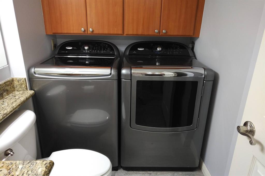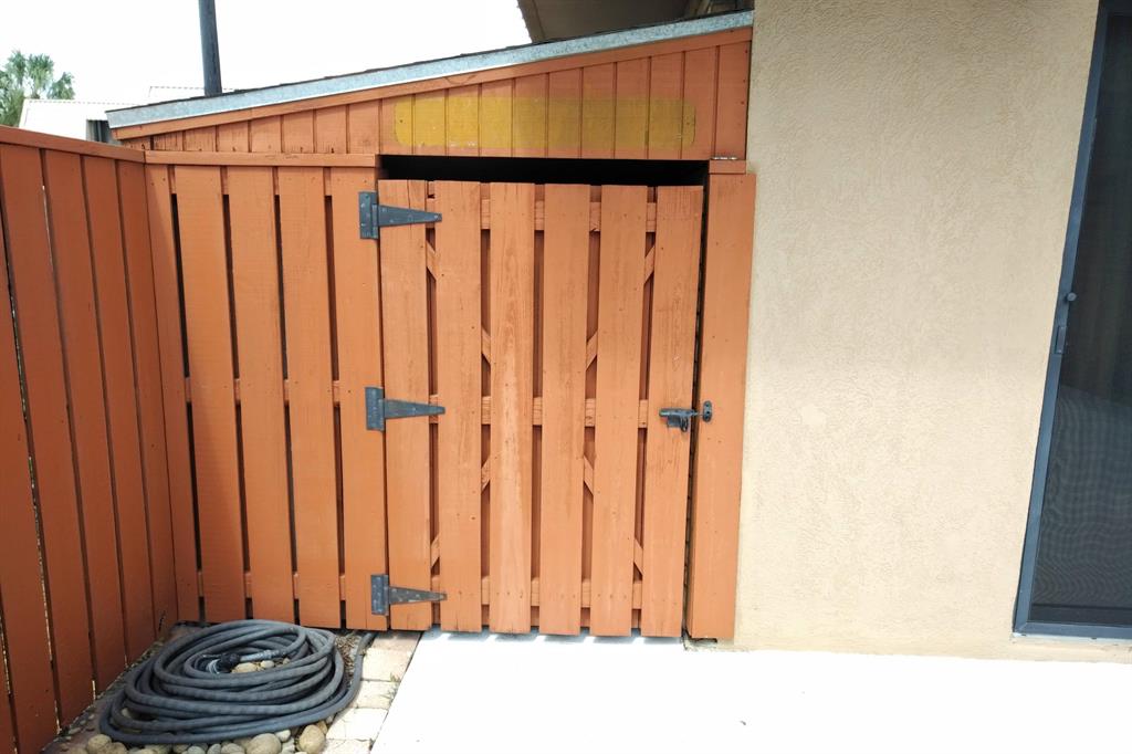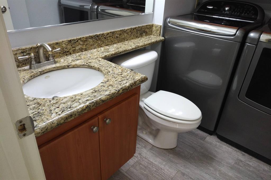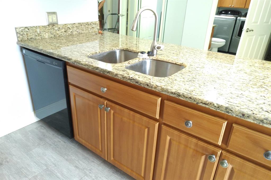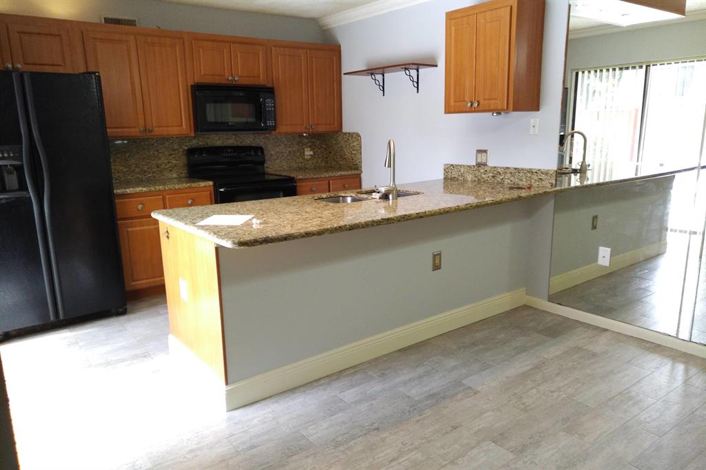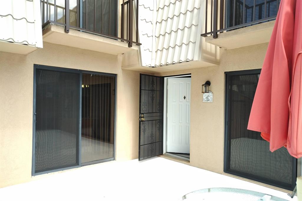 Beautifully updated unit with shaded view. Parking at your door. Cove molding, indirect lighting LR/Kit. New vertical blinds. Plantation shutters upstairs. Current fridge works but makes noise. Other appliances newer. Range has double oven. Microwave, Granite counters. 2 of 3 baths renovated. Downstairs fully tiled with wood-look ceramic/porcelain tile, upstairs carpeted. Courtyard Entrance freshly painted. Shows very well. SMALL PICKUP NON-COMM. TRUCK OK PER MGMT. 1 pet per updated Rules/Regs attached and a list of non-allowed dogs. Owner has pd spec assess for new fence. Appl attached. Easy show! ORCHID ON PATIO WILL BE PROFESSIONALLY REMOVED. All else stays. Room sizes approx. Please verify if exact measurement required. Sold AS IS