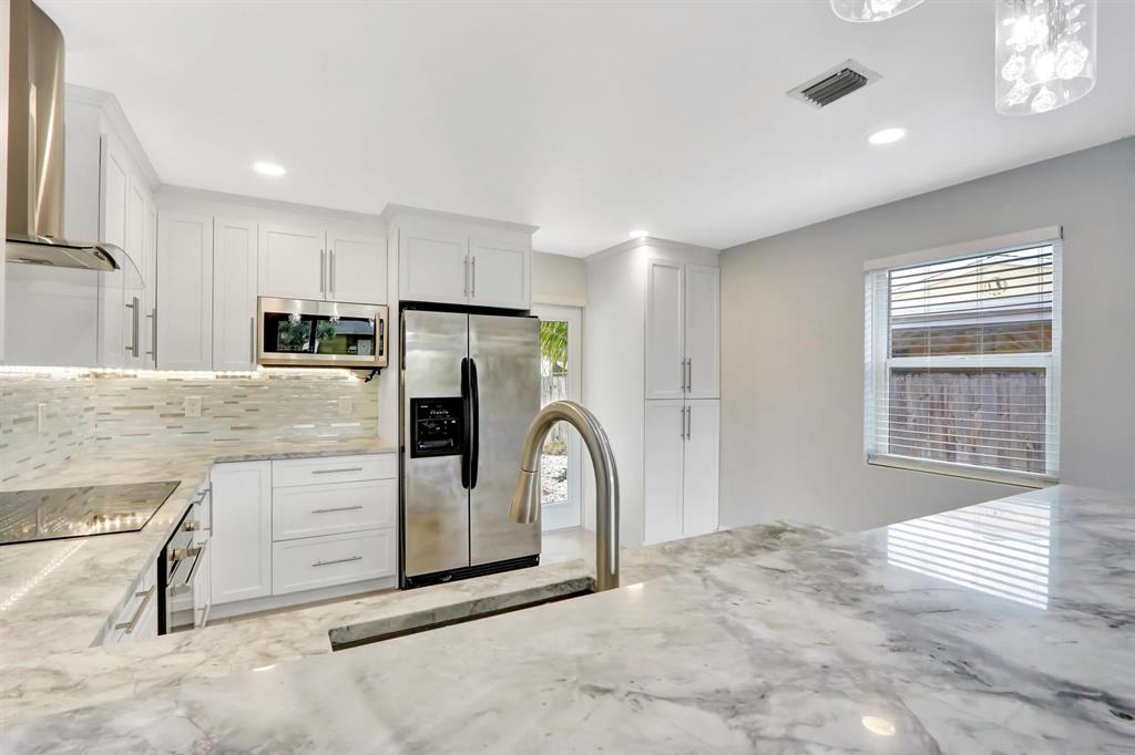 Welcome to this GORGEOUS, MODERN & COMPLETELY UPDATED 3 bedroom, 1 bathroom, POOL home situated in a quiet neighborhood directly behind Dreher Park. This home boats a brand new kitchen that contains white cabinetry with soft close drawers & doors, 2-Lazy Susans, gorgeous countertops, tiled backsplash, all stainless steel appliances, a cook-top with a modern range hood, LED lighting under the cabinets, and LED High Hat lighting. The bathroom has been fully remodeled to feature a walk-in shower, a touch faucet, and a new vanity. Other features and upgrades include: built-out stone entertainment center in the living room with LED lighting, updated tile floors throughout, updated windows and blinds, updated doors, freshly painted interior and exterior,