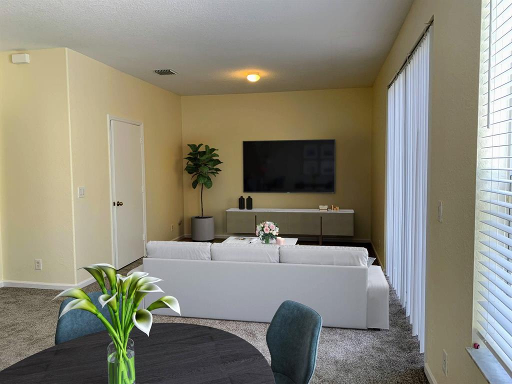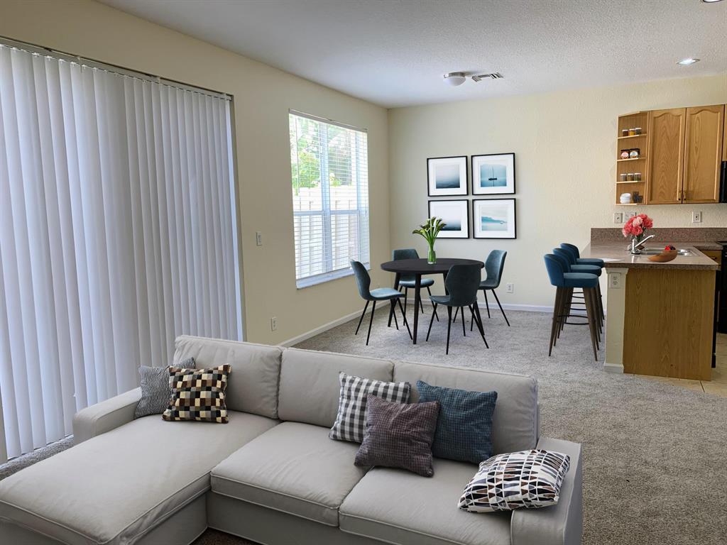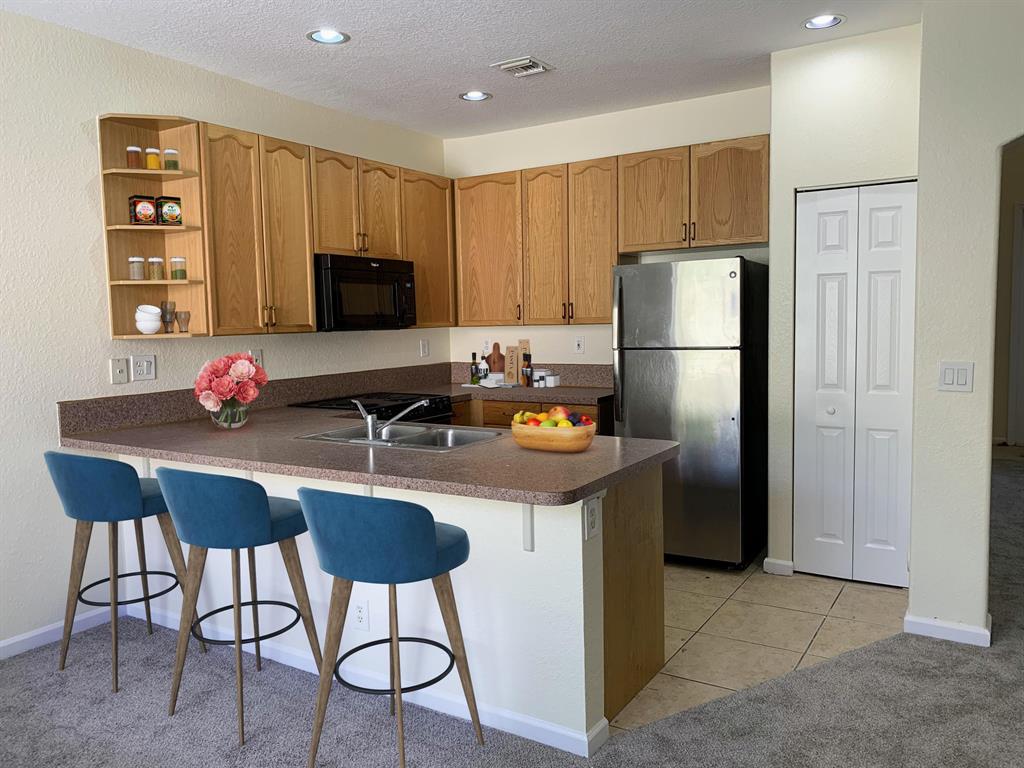 Value abounds in this attractive and functional home located in the gated and centrally located Lakes of Laguna community. The 2-story foyer with arched window welcomes you into a generously-sized living and dining room which leads to a kitchen with breakfast bar & dining area overlooking the family room. The 2nd floor houses the full-size washer & dryer, oversized master bedroom with private bath and 2 other bedrooms. Other special features include: brand new 4 ton Trane AC; new carpet & paint throughout; double walk-in closets & Roman tub in master b.r.; hurricane panels for all windows; fully fenced backyard w/full paver coverage for easy maintenance & cherry wood cabinets in kitchen. Reasonable HOA fee includes front yard lawn cutting.