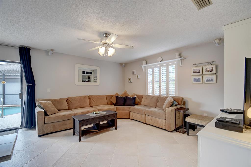 Fabulous 4 bedromm, 2 1/2 bath pool home in Amber Bay, Lakes at Boca Raton.Features include renovated kitchen with granite counters, glass door cabinets and a dramatic tray ceiling with recessed lighting. The master bedroom is on the main floor with 3 additional bedrooms and a full bathroom upstairs. There are 2 seperate patios, one with the pool/spa, full screen enclosure and a retractable awning. The other patio is in the rear of the home and is covered and screened. It overlooks a beautiful tranquiity garden. The Lakes at Boca Raton is a wonderful community that features a resort size pool, basketball, tennis, soccer,playground and gym. Nearby shopping, dining and parks. Best Boca Schools. House has 2 A/C's. 2014 & 2009. Newer pool pump.