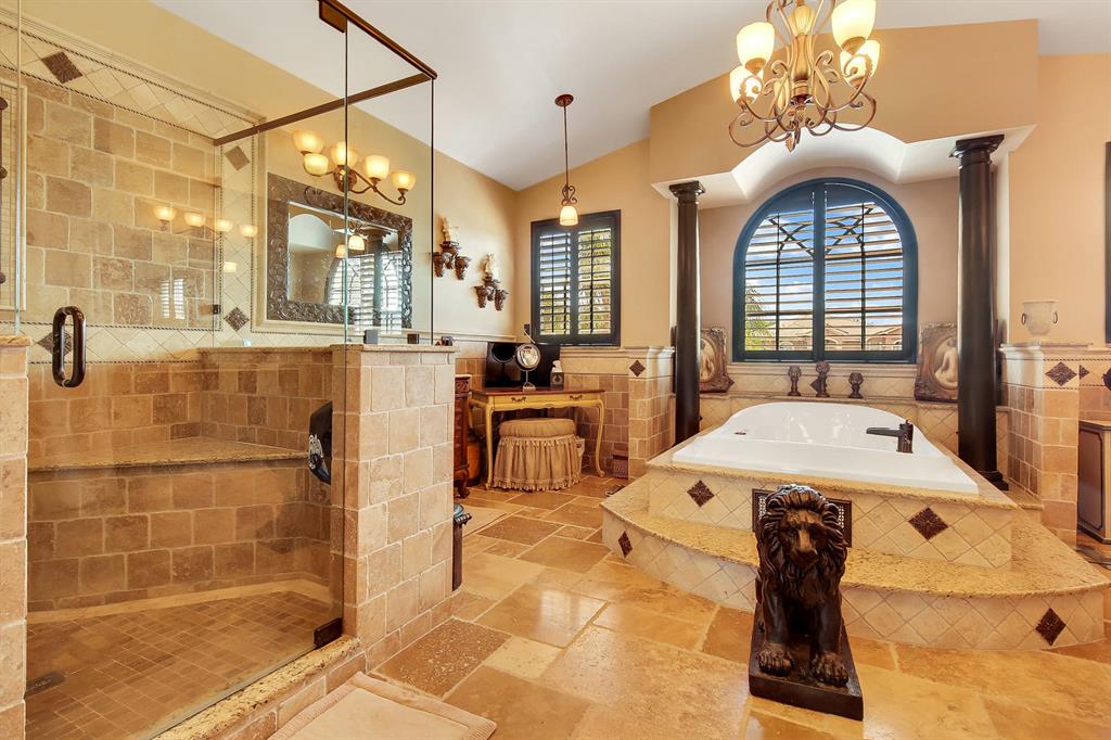 WOW, this home is a must see and shows like a designer model, on one of the largest waterfront lots in Saturnia! This magnificent home boasts 5 bedrooms, 4 baths, with incredible indoor and outdoor living spaces. Owner has put in over $100,000 in custom upgrades recently. The master suite if absolutely stunning with sitting area, palatial master bathroom with his/her amenities. Outdoor living overlooking pool and lake on each floor complete with custom electric sun screens. Gourmet kitchen with Kitchenaid appliances will satisfy most gourmet chefs. Generator with in ground propane tank will keep things running if power is lost. Gas fireplace in living room. Relax after a long day or entertain along side your gorgeous pool and spa overlooking long lake views from your premium lot.
