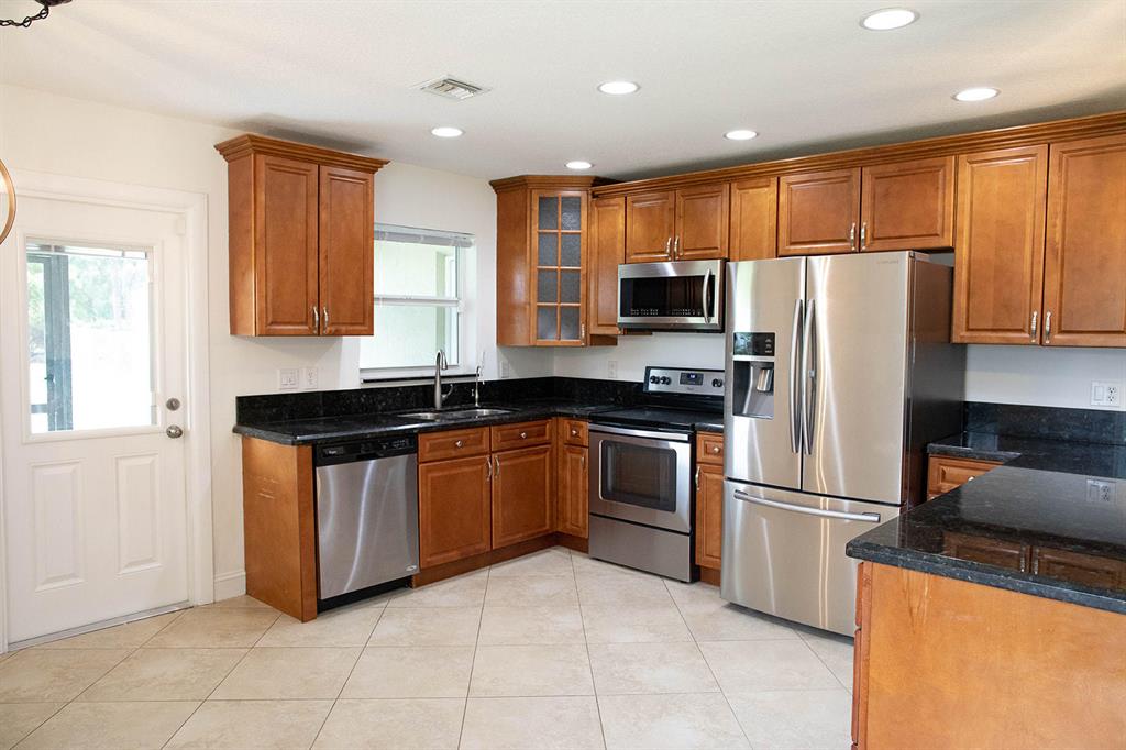 This property has IMPACT WINDOWS and doors throughout, new water system and softener replaced 3 years ago, 1 year old water pump, double filtration water system for the sink in kitchen, updated appliances, updated bathrooms, big warehouse with full electrical and a 240 outlet, the entire property is fenced in and it has an outdoor shower. The property is 1.25 Acres and has all the room you would need for trailers, boats and cars. All sizes and dates are approximate.