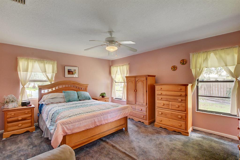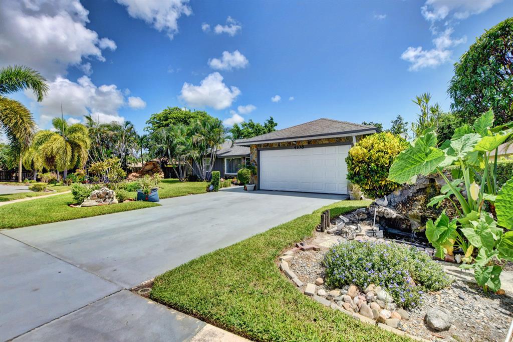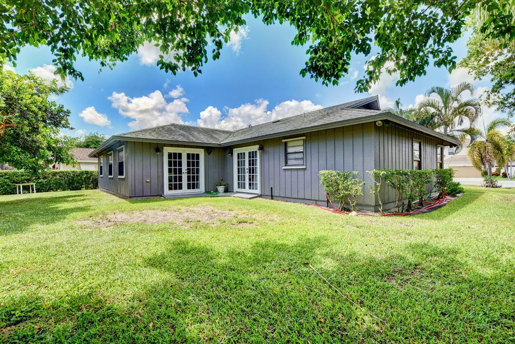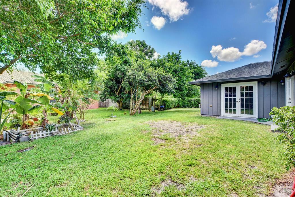 Spacious single story 3 bedrooom 2 bath 2 car garage home situated at the end of a private cul de sac lot on .24 acres with a split bedroom open concept floorplan, granite countertops and stainless steel appliances, crown molding, newer carpet, walk in master closet, generously sized bedrooms 2 sets of french doors leading to a well sized yard. Close to I95, golf, shopping, restaurants and a short drive to downtown West Palm Beach.