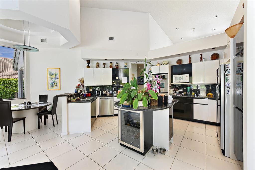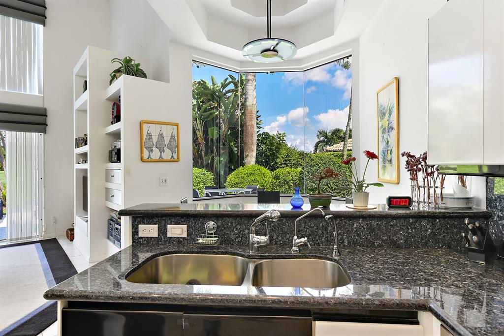 Come see this one story split floor plan contemporary home with expansive water & golf course views. Kitchen has granite counters, family room with built-ins, sunken living room with fireplace, volume ceilings throughout. Home has 3 car garage on .32 acre lot. Membership to St Andrews CC is required.