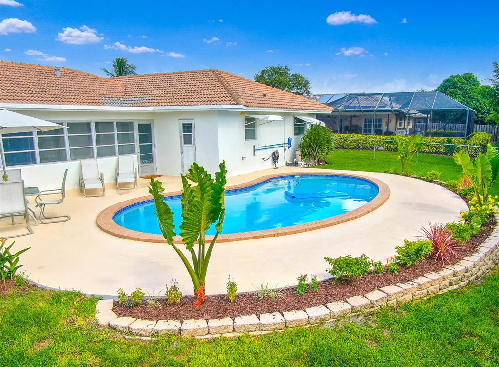 Amazing opportunity to own a home in East Boca's most sought after ''A'' rated school district! This 3Bedroom, 2 Bath home boasts 1619 sq ft PLUS a Finished Enclosed Porch that adds nearly 300 square feet to the home. SOAK UP THE SUN in this tropical landscaped backyard at your clean, BEAUTIFULLY RESURFACEDPOOL. Let the kids enjoy the big, fully fenced yard. Enjoy ample storage space in your 2-CAR GARAGE with a gorgeousChicago Brick circular driveway, fresh paint inside and out, partial impact glass, partial shutters, porcelain wood lookplank tile, professional low-maintenance landscaping with quality sprinkler system and more! This home has it all!