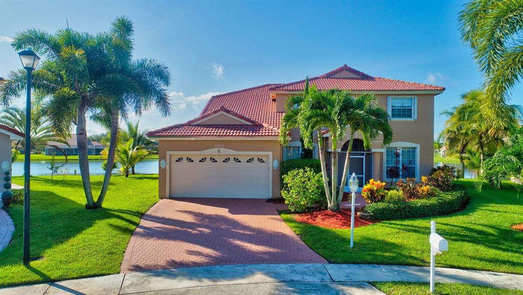 Location! Location! Stunning 5 Bedroom 2.5 Bath Waterfront Pool home in Cul de Sac. Oversized pie shaped lot. Very spacious home, light and bright. Screened Swimming pool with unbelievable panoramic lake views that feel like they surround the home. Baby fence. 1 bedroom downstairs 4 bedrooms upstairs. One A/C is 2 months old. Second A/C is 10 yrs old. Roof is 2 yrs old. Hurricane Shutters. Low HOA community. Walk or Bike to 3 ''A'' rated schools. Close to South County Park. Areas for Baseball, Voleyball, Basketball, Tennis, and 27 hole golf. Nature center water park and walking areas.