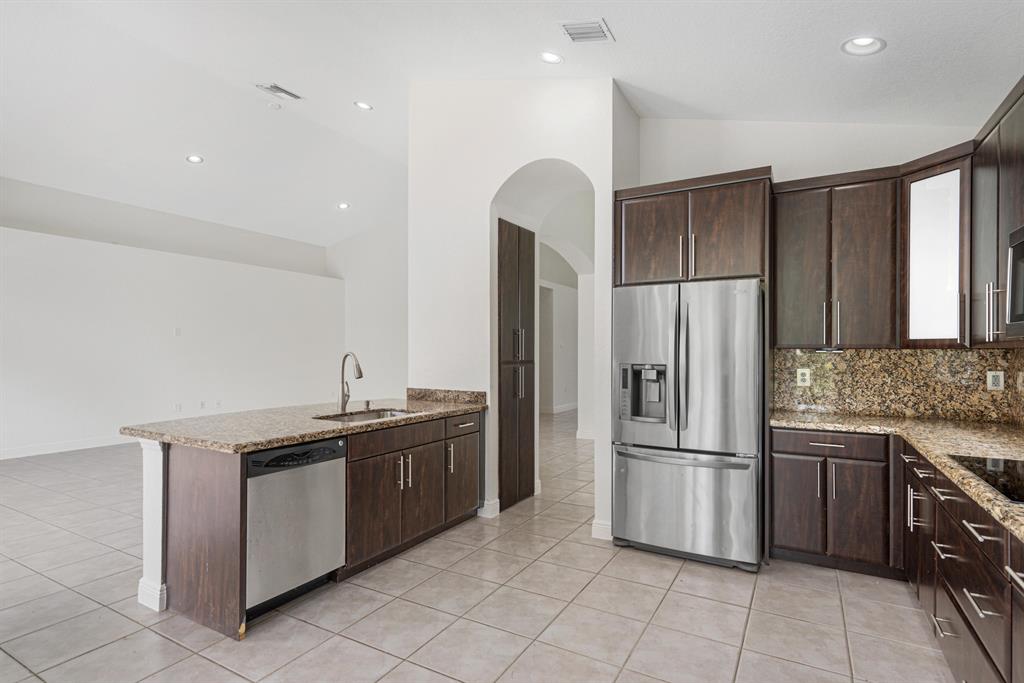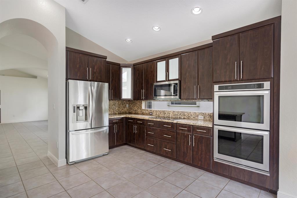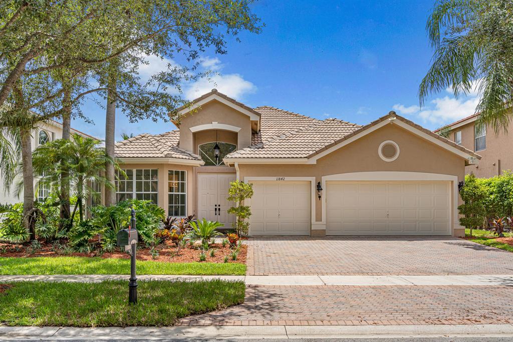 Updated one story pool home on south backing lot with lovely lake views.The home features an open floor plan with four bedrooms,three baths and a three car garage.Features include tile throughout the main living areas and wood flooring in bedrooms.The gourmet kitchen has wood cabinets,granite countertops and stainless steel appliances.The snack bar and bay windowed breakfast area are great for casual dining while the formal dining room is perfect for holiday dinners.The large family room is open to the kitchen.The master suite features two walk-in closets and luxurious bath.You'll love the ''backyard resort'' - pool and spa overlooking the beautiful lake.Newer a/c units - one replaced 2011 and one replaced 2014. Manned gated community with amenities and 'A' rated schools across the street.