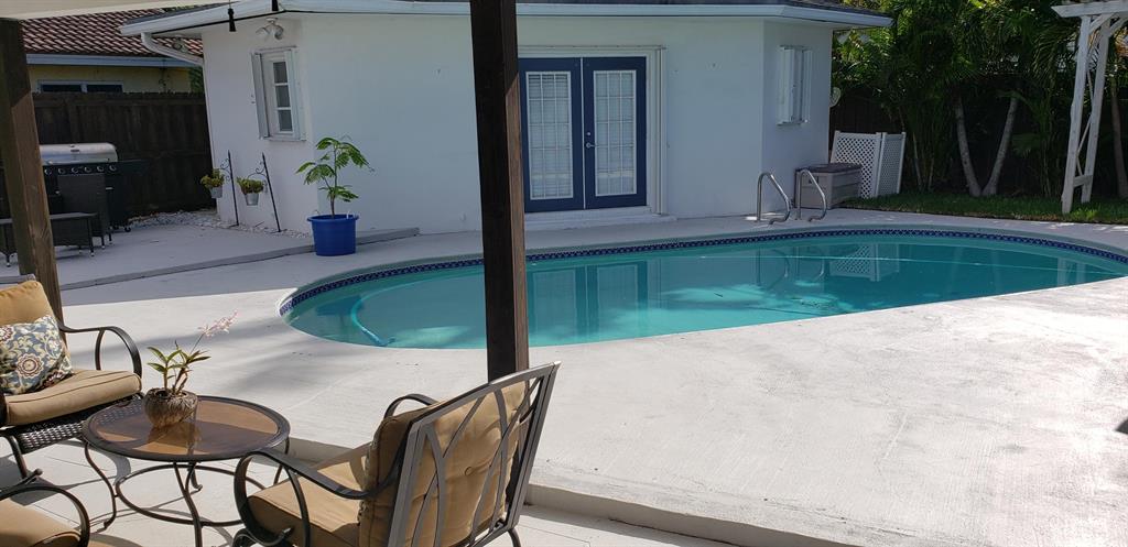 Amazing 3/3 pool home in east Boca! Property features a completely separate building with kitchen cabinets, sink, fridge and bathroom, perfect as a mother in law suite, office, guest house, etc. Mother in law suite has been completely upgraded. Main house has granite countertops in kitchen, upgraded bathrooms and tile throughout. An addition expands the primary master to a spacious retreat (and adds additional sq. ft. to the 4/2 comps in the area). Accordion hurricane shutters on both structures. Newer A/C in main house, new water heater. Oversized 2 car garage with laundry area and front load energy efficient washer and dryer. 44'x13' slab with double hinged gate perfect for boat, RV, or additional vehicle storage. No HOA. Quiet family oriented neighborhood with ''A'' rated schools.