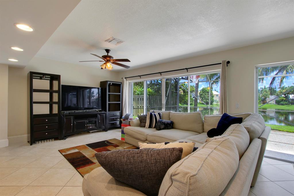 This lovely 2 story, 4 bedroom home w/oversized 2 car garage & screened patio is located on a cul-de-sac lot with a scenic lake view. This home has a beautifully renovated kitchen with light wood cabinets, granite countertops, & appliances. Sliding glass doors in the family room lead to the screened patio overlooking the lake. The master bedroom includes a large walk-in closet and luxuriously remodeled bathroom! All baths have been remodeled. ROOF-2014. Two A/C zones. The low HOA fee includes cable & 2 community pools, a kiddie pool, hot tub, tennis & basketball. Lovely West Boca area. Excellent Schools.