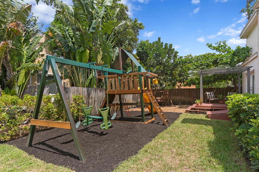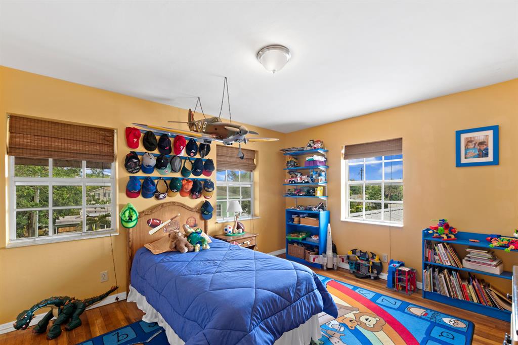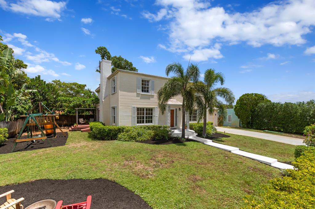 Traditional style 2 story 3 bedroom plus den/4th bedroom with 2 1/2 baths in move-in-condition. Located just west of Flamingo Park in the Palm Beach Public school district. Original hardwood floors, fireplace, updated throughout. Large rooms with family room / den, plus an upstairs 4th bedroom or play-room/den off of the master suite. Quiet cul-de-sac street with little traffic and a nice yard area and large driveway. Large 2 car garage, a complete set of rated hurricane shutters, newer A/C units, and updated baths. Metal roof, irrigation system on a well, updated electric panels, and CBS construction.
