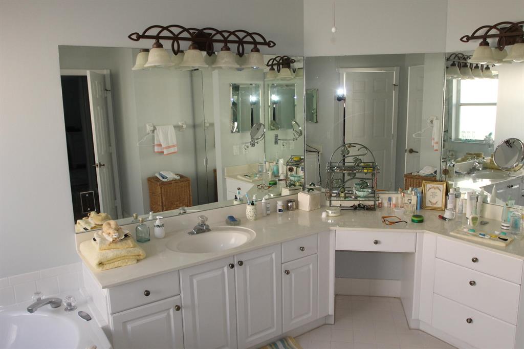 This is your rare chance to get a nice home this big in the Villages area at this price! With over 3,000 SF of living area and 5 full bedrooms/3.5 bathrooms including a private suite downstairs, you get all the space you could want with a gorgeous golf course view just a few minutes from downtown West Palm Beach! ** This beautiful home has been significantly remodeled recently with a high-quality kitchen featuring antique glass doors, Cambria quartz countertops, extensive cabinet lighting, stainless steel appliances including a wine cooler, etc. All flooring throughout the house is new including thick hardwood downstairs and bamboo upstairs over the solid concrete floor. New A/C. * Visit https://youtu.be/vxGShgQ_Gu0 for an aerial video tour, or you can also view it in the photos section.