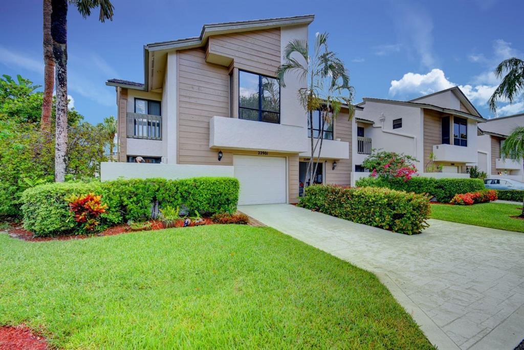 Fall in love with this lakefront corner townhome, featuring extraordinary space and style. Architectural details include shiplap feature walls, stunning hardwood flooring, and luxe fixtures and finishes throughout. Gleaming showplace kitchen features sophisticated, contemporary cabinetry, granite counters, tile backsplash, and oversized pass through to seated bar. Gorgeous great room features dramatic, two-story ceilings and windows and contemporary fireplace. Luxurious owner's suite is a restful retreat, with a seating area/home office, patio space, and spectacular spa-like bath featuring double marble vanity and separate shower room with Roman tub. Charming lanai is a sheltered spot for outdoor seating, dining, and entertaining with a view of the meticulously kept landscape and lake.