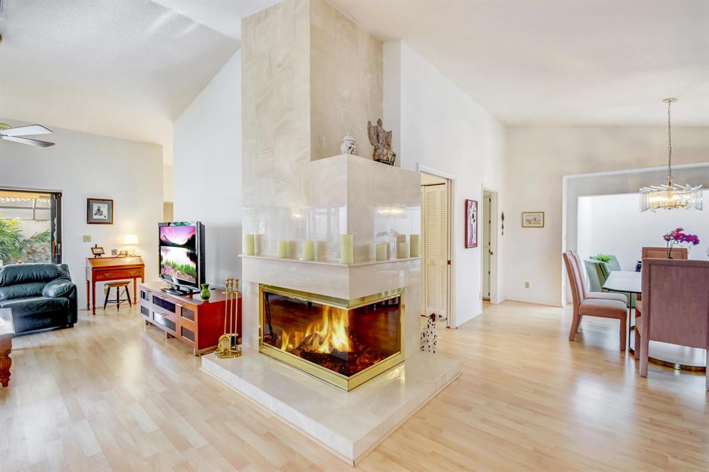 Lovely 3 bed/2 bath home that has been well maintained by the original owner in Pradera. Huge open living & family room w/high vaulted ceilings, formal dining, plus eat in kitchen & split floor plan. Atrium has been enclosed & is a great bonus area featuring 2 sky lights. Walk in & see your beautiful marble fireplace (opens to see from 2 sides). Perfect for entertaining. Laminate flooring throughout the entire home makes everything flow smoothly together. Knockdown ceilings (no popcorn). Kitchen has new stainless appliances. Spacious master bath has double sink vanity, tub & separate shower. Huge walk in closet plus tons of extra closets and storage space. Inside laundry room. Accordion shutters. S-Tile roof from 2006.