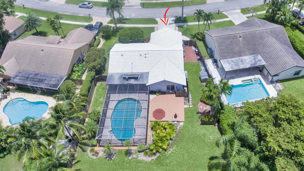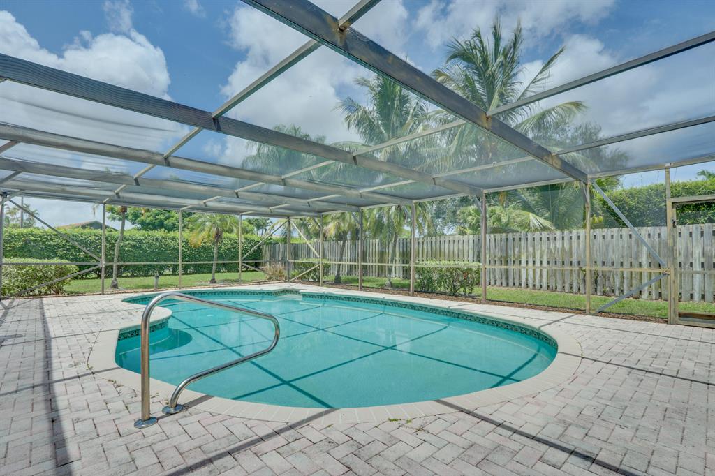 Centrally located in Boca Raton with 'A' rated elementary school district, Middle and High School, sought after Toledo Park / Woodbury, This 3 bedroom 2 bath home (1946 sq/ft under air, total 2394 sq ft) has impact windows and sliders throughout, shutters for front door and reinforced hurricane garage door, spacious open living area, huge & entertaining covered patio, over-sized pool (33' X 23') Jacuzzi/spa & screen enclosure, large lot with six foot hedges & fenced backyard perfect for lavish cookouts and fun-times spent at leisure, 2 car garage converted to an office and workshop can be easily converted back to a garage space, Solar domestic hot water system, all new upgraded TV cable system including the back patio, very well kept and maintained property ready for your (cont.)