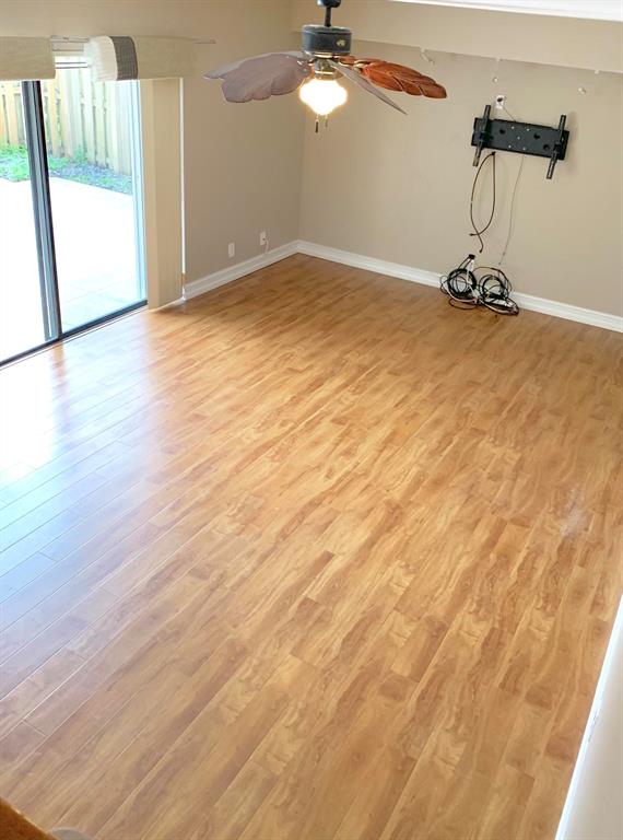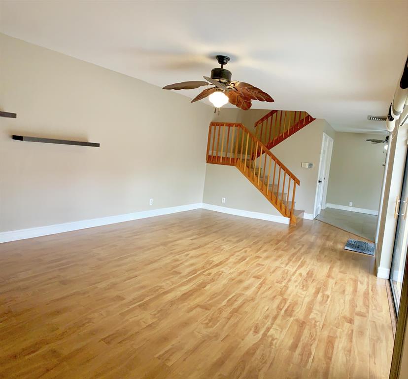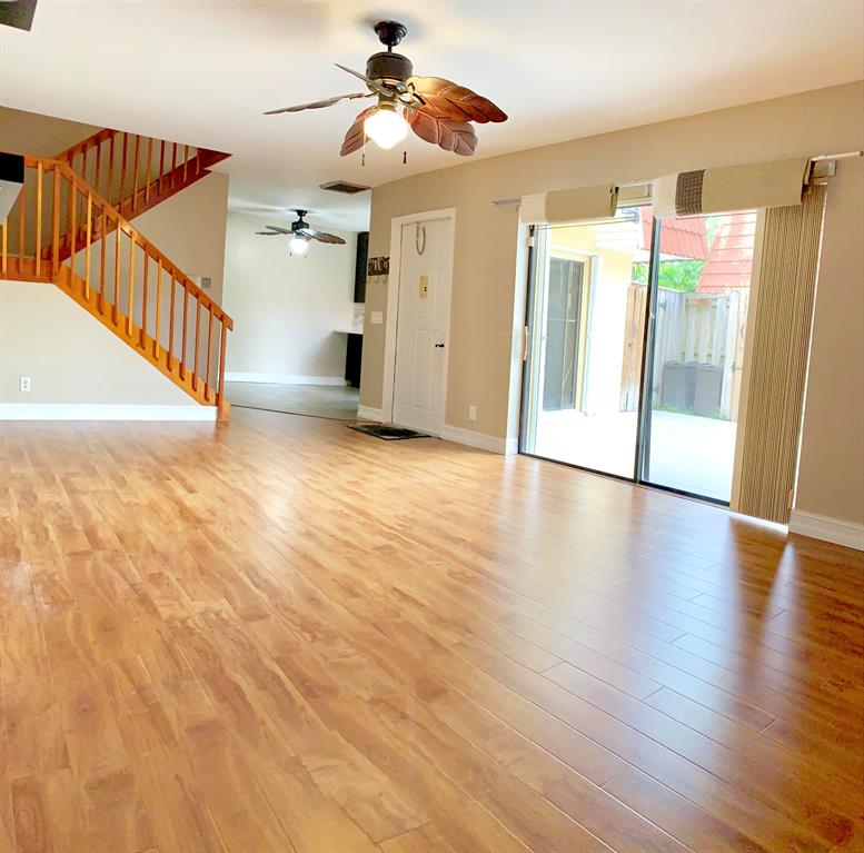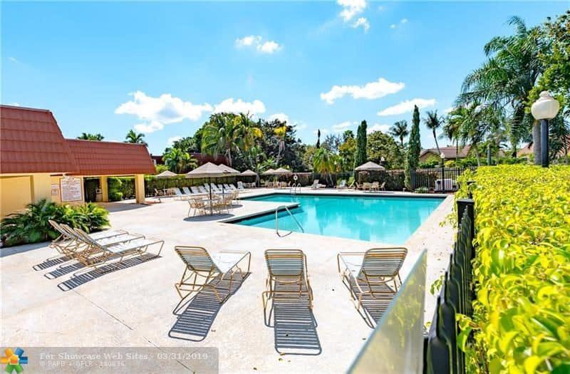 Centrally located spacious townhouse with large private enclosed courtyard. Easy access to shops, restaurants, downtown Ft. Lauderdale, airport and ports. Large sliding glass doors let in plenty of natural light. Second floor bedroom sliders open up to a balcony. Beautifully upgraded kitchen with stainless steel appliances and tile flooring. laminate floors in the living area and second story. Master has a walk-in closet with built in shelving. Plenty of additional storage with wall to wall closet in second bedroom, storage closet under the stairs and outdoor shed located on patio. Full size washer/dryer on first floor. Lovely community pool and lake views.