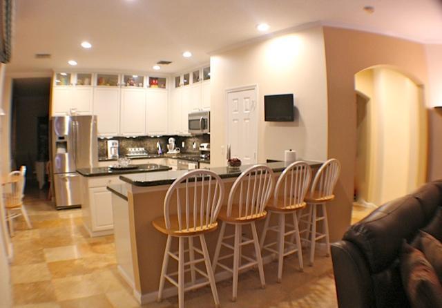 Beautifully upgraded and perpetually maintained Engle Homes Bal Harbour model on cul de sac with lake view in great neighborhood with excellent schools. 4 bedrooms, plus den 2 1/2 baths, 2+ garage. Portion of 3 car garage has been incorporated into living area for den with custom-built Murphy Bed (queen size) with lighted shelving, drawers and built-in desk. Polished travertine & wood floors throughout first floor, plus new carpet in 3 bedrooms & hallway upstairs and marble tile in bathrooms. Upgraded oak tread, risers & rails on straircase.Custom Levelor window treatments throughout house. Rolladen Hurricane Shutters throughout. Pool with raised spa spillway into pool. Multi-colored LED pool & spa lighting. Screen pool enclosure on large patio with both open & covered areas. MOR