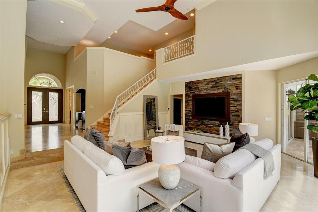 Renovated to perfection in Woodfield Country Club! This elegant home boasts volume ceilings, abundant light throughout, and spacious open floor plan.Featuring high end wood finishes throughout and a spectacular gourmet kitchen with gas range, large island and stone counter tops. Office/den and guest bedroom with cabana bath are conveniently located on the first floor. Loft and additional two bedrooms and bathroom upstairs, along with master suite. The master suite contains two walk-in closets and a huge shower and vanity. Private outdoor living area with summer kitchen, travertine patio and salt water pool.Woodfield Country Club is an exclusive, luxury community centrally located with resort style amenities: golf, tennis, clubhouse, fitness center, pool, splash park, spa and restaurants.