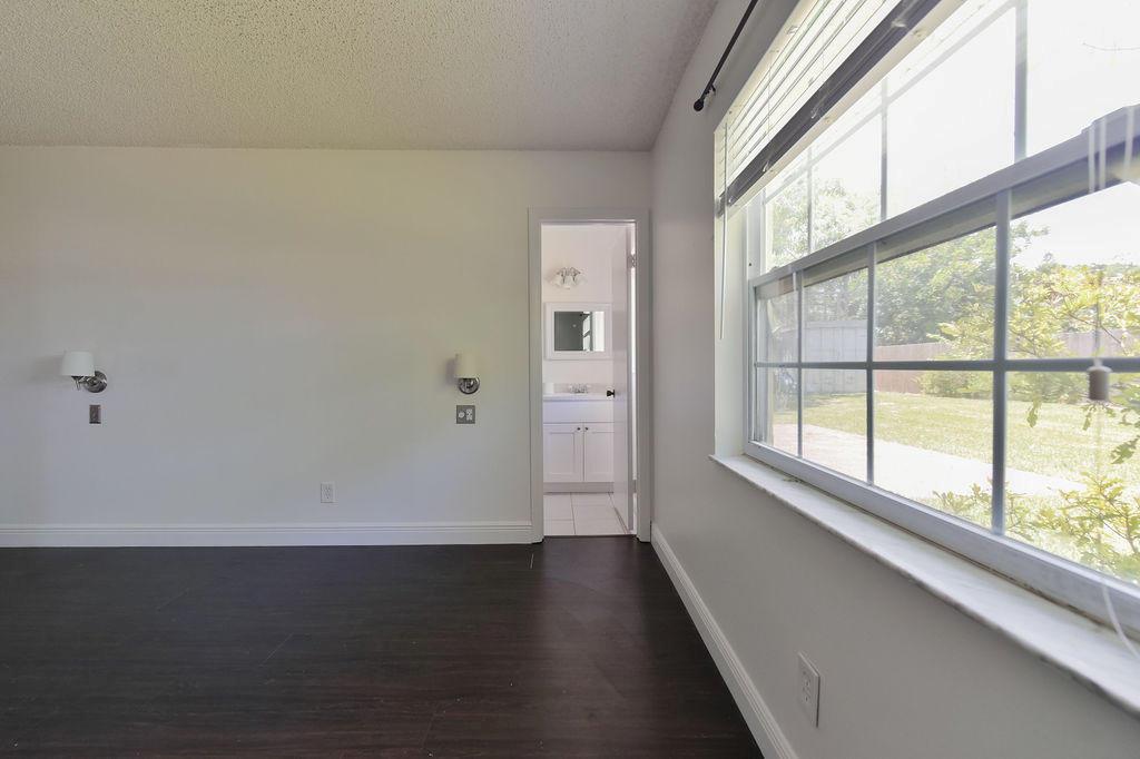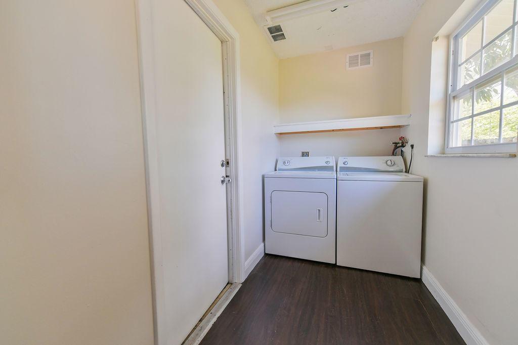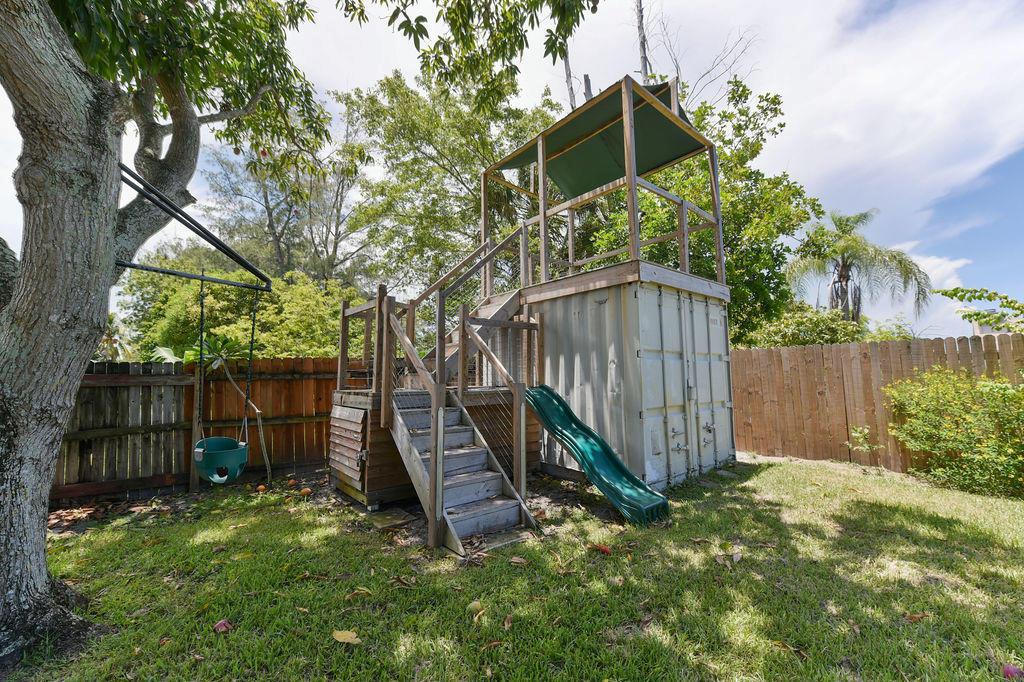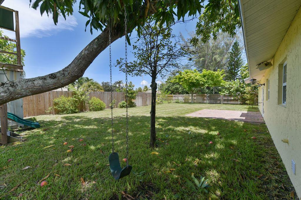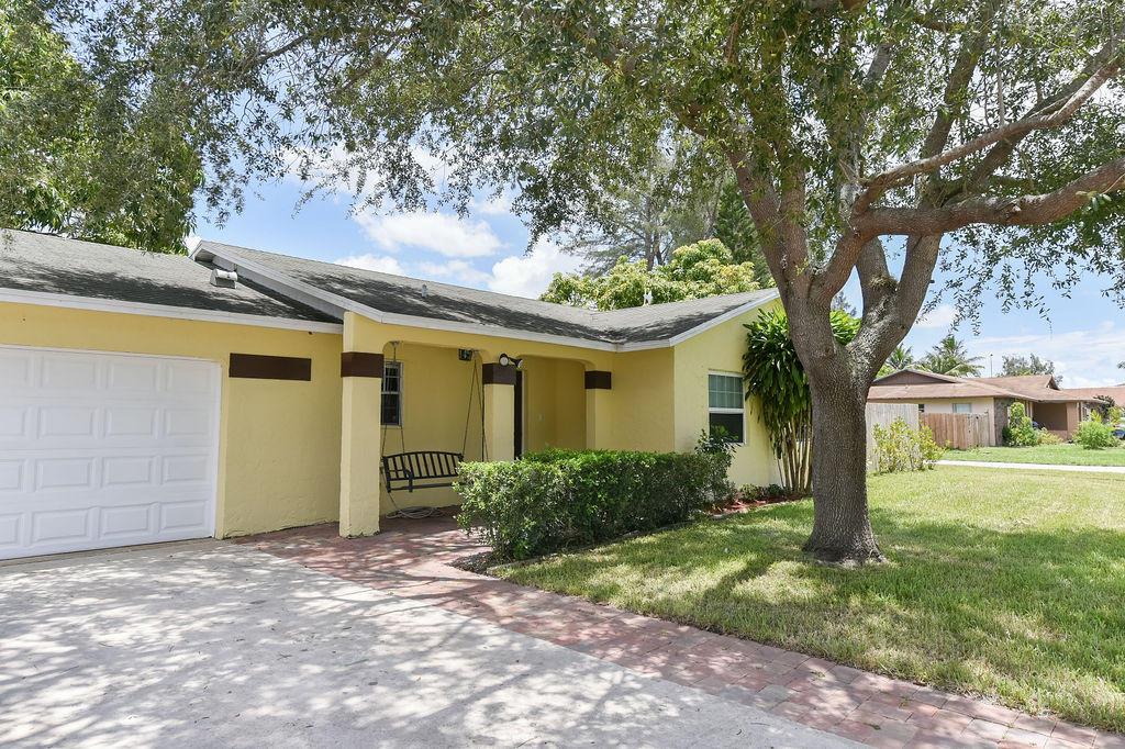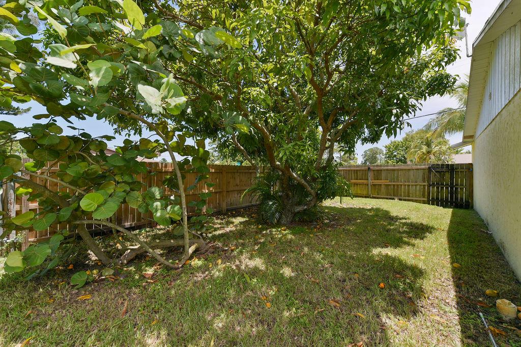 Incredible 3/2 CBS home with bonus features: large corner lot, granite countertops in stylish kitchen with stainless steel appliances, freshly painted home interior and exterior, dark laminate wood floors, bonus room/office with adjustable butcher's block desk, extra paver driveway and side gated parking areas, front door peephole camera with built-in screen along with 10 security cameras and screen, viewable on Apple or Android with free app. White French doors open to gorgeous fenced back yard with paver patio and lots of fruit trees- mango, coconut, ackee, avocado, starfruit and many more. Small fenced area for gardening. Property includes well for landscaping and sprinkler system to keep your yard lush and green year round. 3 backyard vehicle gates with deadbolt locks.