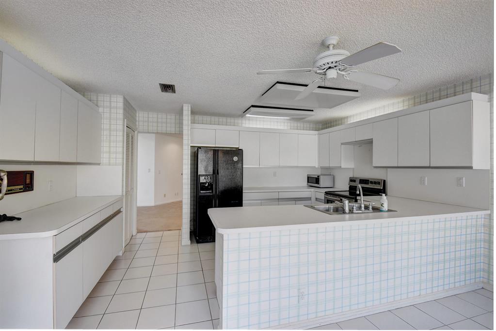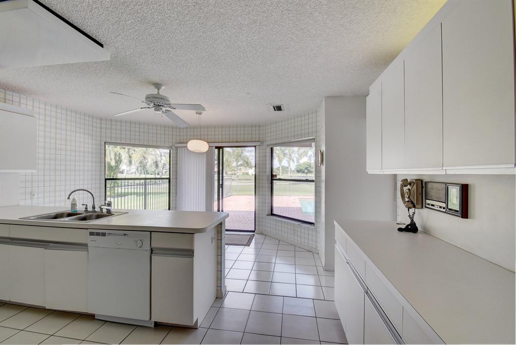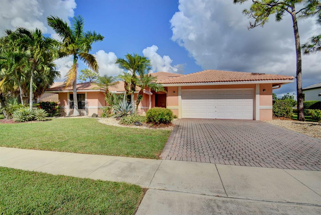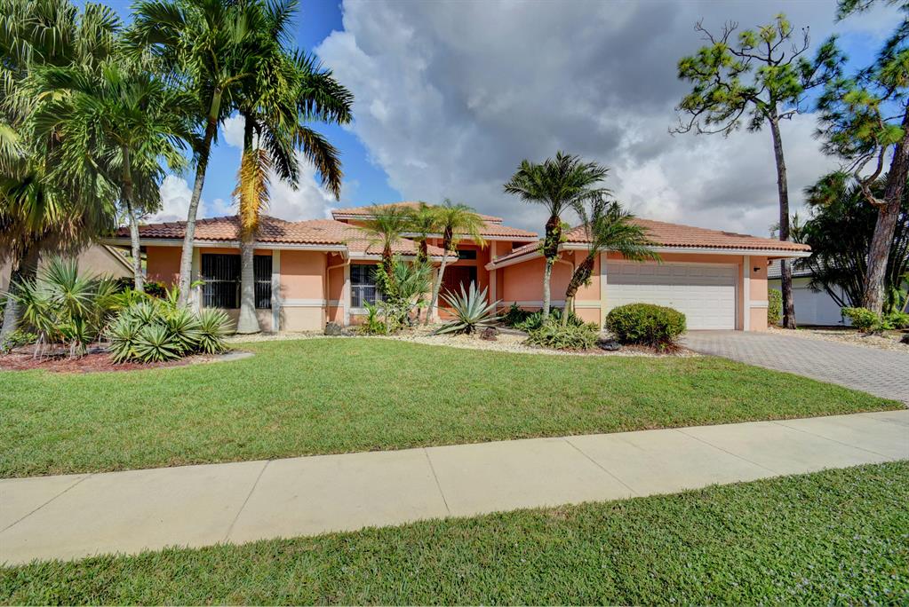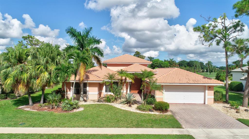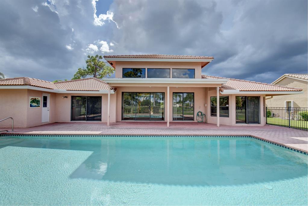 THIS LOVELY HOME HAS A DOUBLE DOOR ENTRY - ONCE YOU ENTER YOU SEE THE EXPANSIVE GOLF COURSE VIEW - EXTRA LARGE PATIO AND POOL WHICH CAN BE SEEN FROM THE GREAT ROOM, WHICH HAS EXTRA HIGH CEILINGS, MASTER BEDROOM AND KITCHEN.IT FEATURES 3 BEDROOMS AND 3 1/2 BATHS WITH A SPLIT BEDROOM PLAN FOR PRIVACY FOR OWNERS AND GUESTS SEPARATE CABANA BATH WHICH CAN ONLY BE ENTERED FROM OUTSIDE. PLENTY OF CLOSETS. 2 CAR GARAGE, SEPARATE ENTRANCE FOR THE GOLF CART. BOCA WOODS FEATURES 2 CHAMPIONSHIP GOLF COURSES, DRIVING RANGE, PUTTING GREEN, ACTIVE GOLF AS WELL AS TENNIS -PROFESSIONAL ENTERTAINMENT - FITNESS CENTER WITH PERSONAL TRAINERS - WOMEN CLUB - BOOK CLUB - VALET PARKING FOR OWNERS AND GUESTS. GOLF EQUITY MEMBERSHIP MUST BE PURCHASED WITH ALL HOMES IN BOCA WOODS.