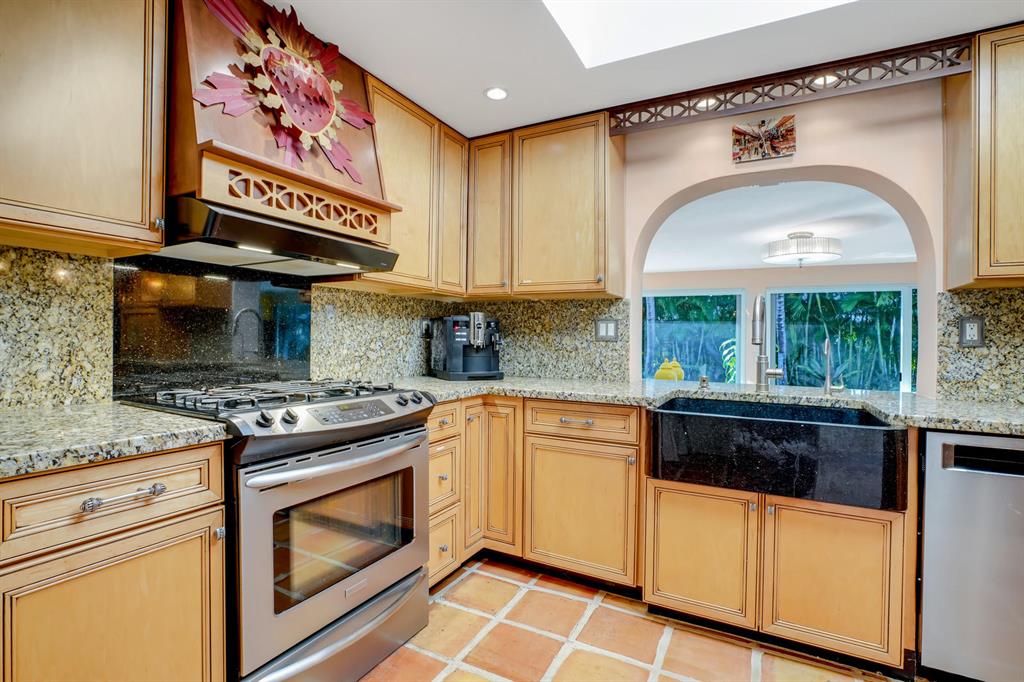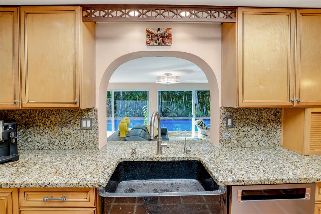 This is the ideal FLORIDA lifestyle! Private, fenced & lushly landscaped backyard w/oversized pool, marble patio, outdoor shower + canopied lounging area with firepit. Charming front entry w/pavered driveway, walkway & courtyard. Enter through the beautiful leaded glass hurricane door flanked by 2 ''bay nooks'' that add extra detail to the home and find the sunny, open living room and dining area with crown molding. Updated kitchen w/wood cabinets, granite counters, farmhouse sink, stainless steel appliances + recessed lighting & a skylight. Family room w/fireplace has impact sliders out to the pool/patio/backyard + a cozy study nook. NO POPCORN ceilings! No HOA fees. Ideal East Boca location w/''A'' rated schools, close to the beach, shopping and I95.