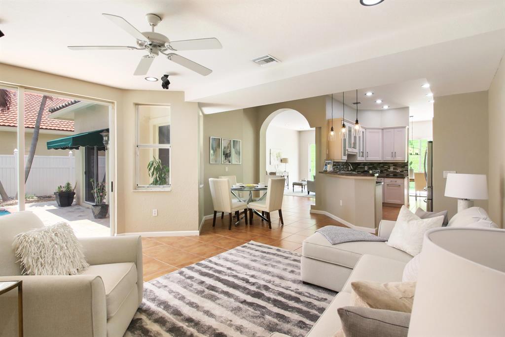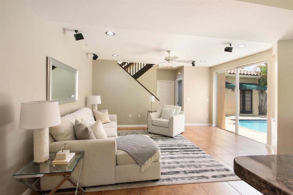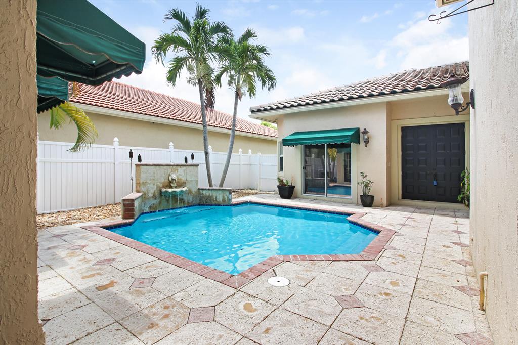 You will love this spacious, newly remodeled courtyard style home with a cabana (guest suite) in Coral Springs. This 4-bedroom home with 3 1/2 beautifully upgraded bathrooms and vaulted ceilings includes a pool, cabana and 2-car garage - giving you 2,651 sq. ft of expansive elegance. Imagine preparing a meal in your sleek and stylish gourmet kitchen with floor to ceiling cabinetry, stainless steel appliances and stone counter tops while listening to the trickle of your waterfall in view of your outdoor poolside courtyard. The first floor of the main home welcomes you with an open floor plan including kitchen, living room, dining room and family room with a master bedroom suite and additional half bath. Upstairs you will find 2 additional bedrooms and gorgeous remodeled bath.