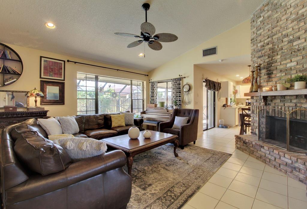 *Back on market, buyers financing denied* Beautiful 3 bedroom, 2 bath pool home in the highly desirable Barrington community of Boca Chase. This spacious home is located on a quiet cul-de-sac street with tons of features including a charming wood burning fireplace, vaulted ceilings, neutral tile throughout with new wood look tile in the living room and bedrooms, huge master w/ walk in closet, updated recessed lighting and knockdown ceilings (no popcorn!), newer electrical panel, accordion shutters, screened in pool area, fully fenced in yard, 2 car garage, and more! Barrington is a pet friendly community with a very low hoa fee including cable, common areas, walking paths, and tennis courts. Conveniently located near shopping, dining, parks, and more. Great Boca Raton schools!
