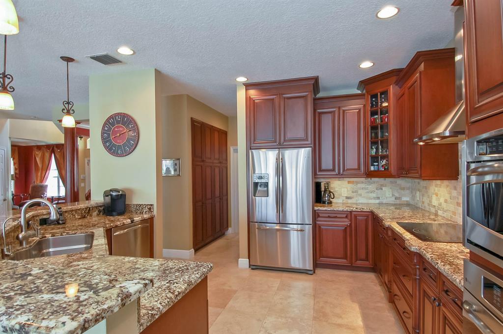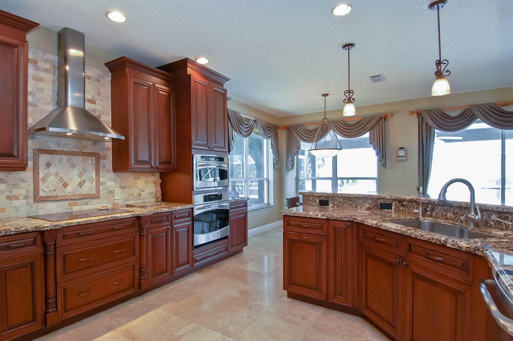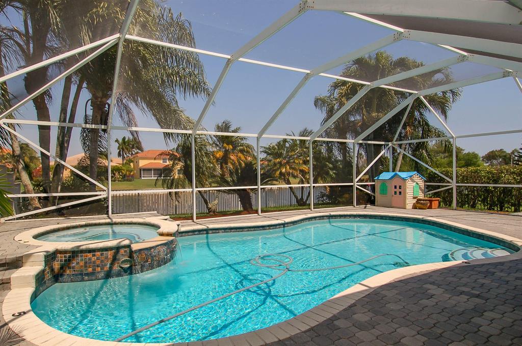 Tropical paradise living! Updated 5 bedroom 3 bath pool home on resort like lakefront lot! Serenity found as you enjoy the heated free form pool and spa with screen enclosed patio. Large family room opens into gorgeous designer kitchen with custom wood cabinets, granite countertops, & stainless appliances. Saturnia marble floors throughout the first floor. Master bedroom, plus 3 bedrooms upstairs and guest bedroom and a full bathroom/cabana downstairs. Master bath totally renovated. One new 2019 A/C. Endless hot water with tankless water heater. Hurricane protection throughout. Boca Falls is a luxurious gated community with a newly renovated clubhouse, resort-style Olympic size pool, kiddie pool,playground,state-of-the art fitness center, tennis courts,basketball court, & roaming security.