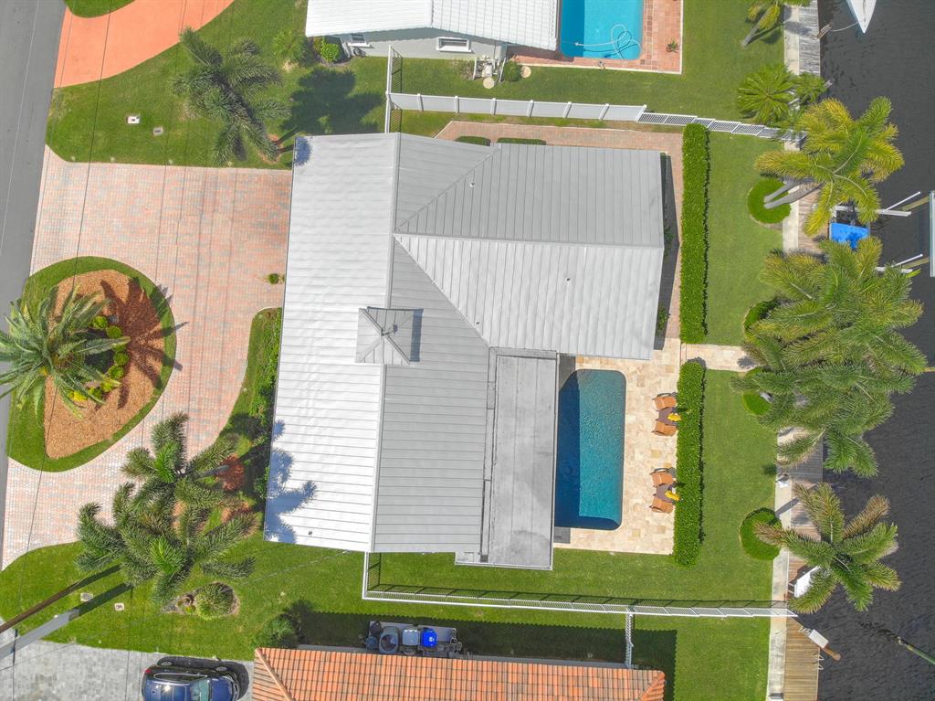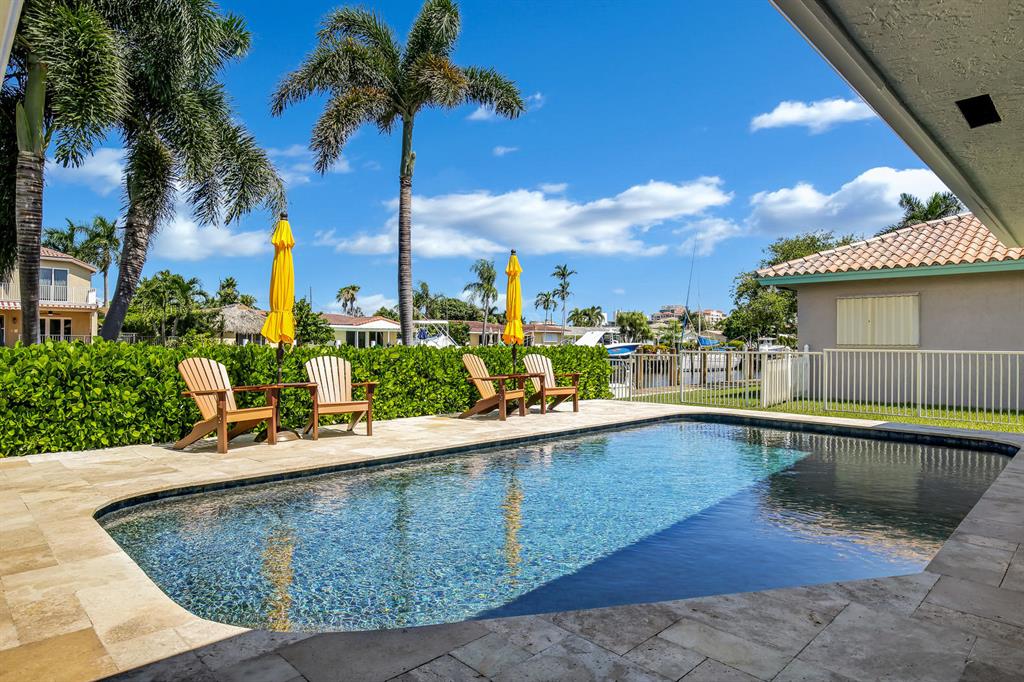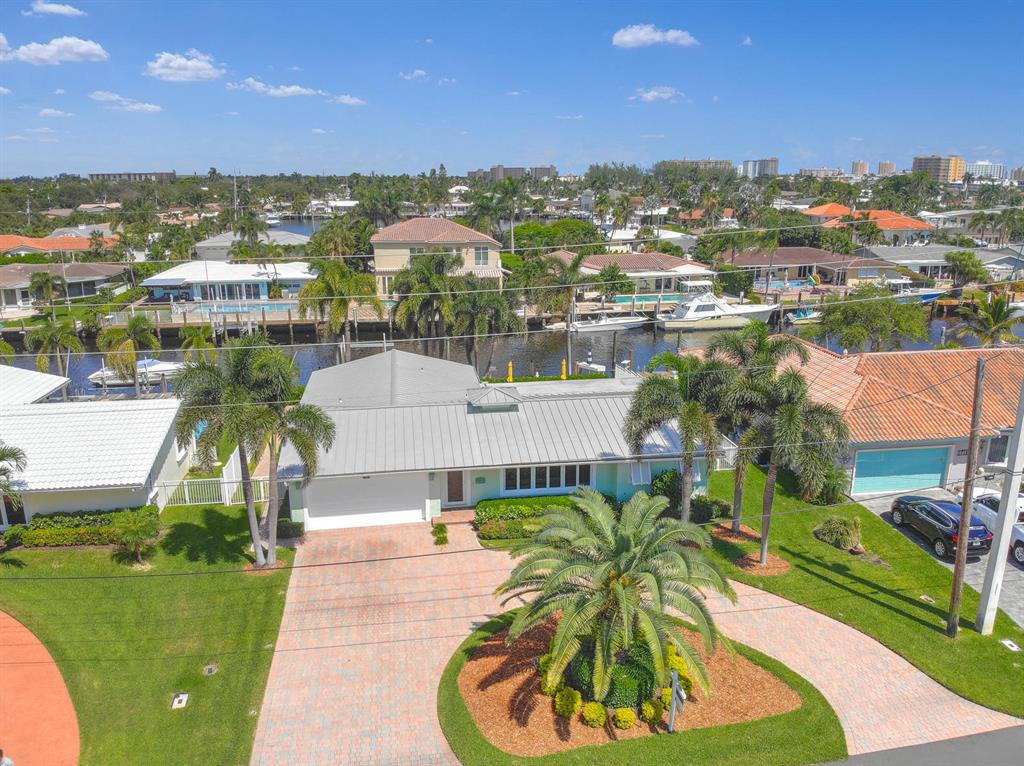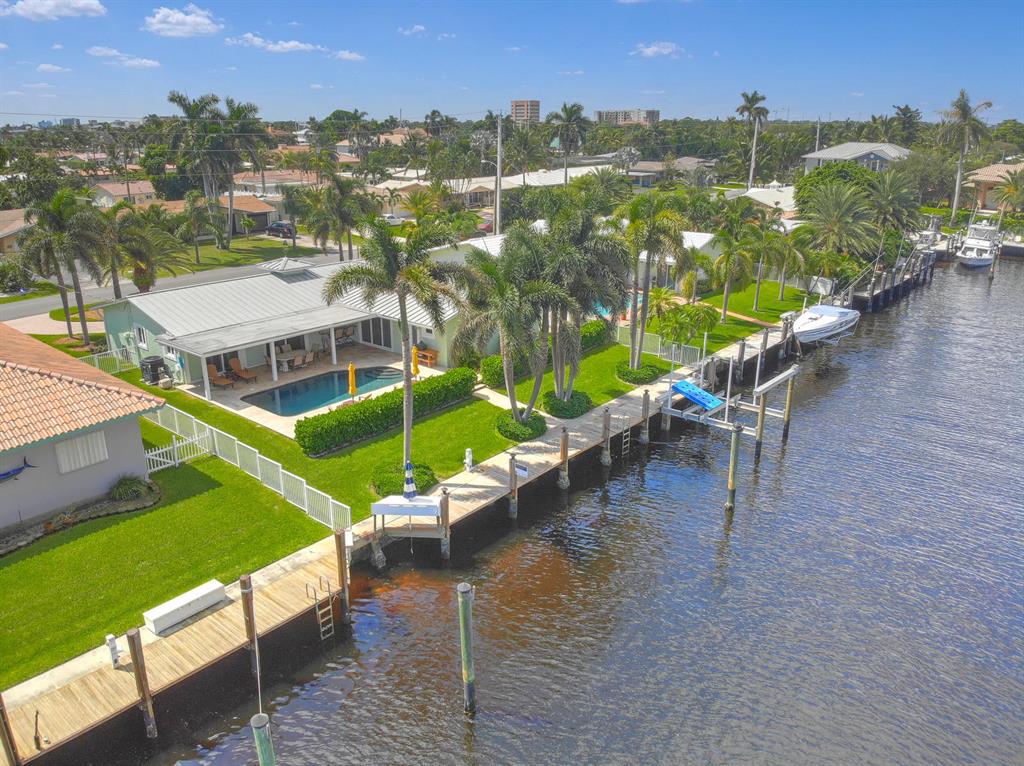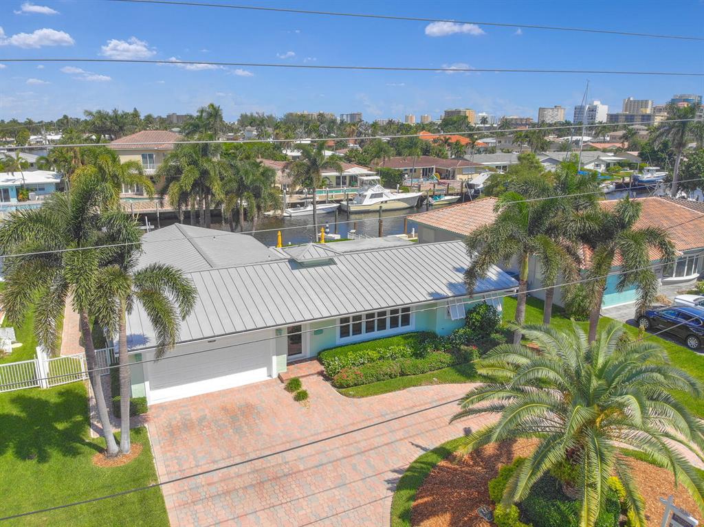 This home is a ''10'' without a doubt and you will agree when you view the dedication given to assuring every chosen detail adds to the beauty and the comfort of this spectacular property. Marble flooring throughout the home, inside and out. The stunning pool/dock area all in marble as well. Completely remodeled kitchen and bathrooms, plantation shutters, impact pocket door sliders doors and impact windows throughout Love the tin roof. Newer A/C and ducts in the attic in 2016 with 10 year warranty. Pool redone in Pebble Tec with 25 year warranty. New water heater, sprinkler system, dock is 2 yrs new with electric & water, batter piling sea wall, property fenced in elegant white iron. Pompano Beach is ''the happening place'' with golf, tennis, new restaurants & shopping coming.