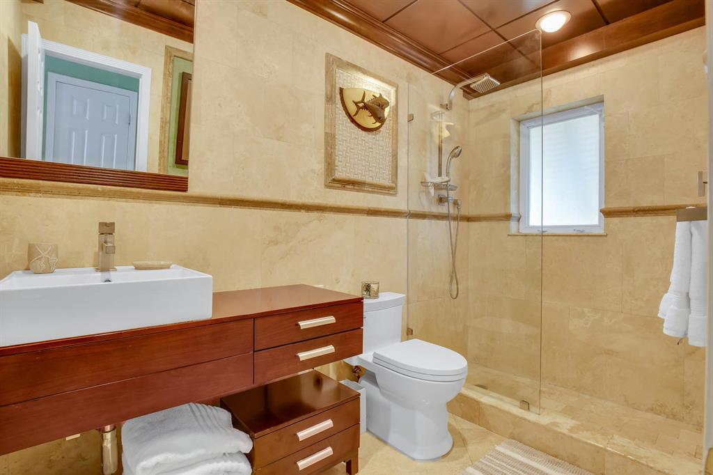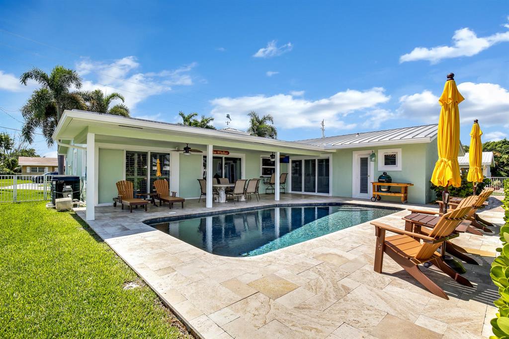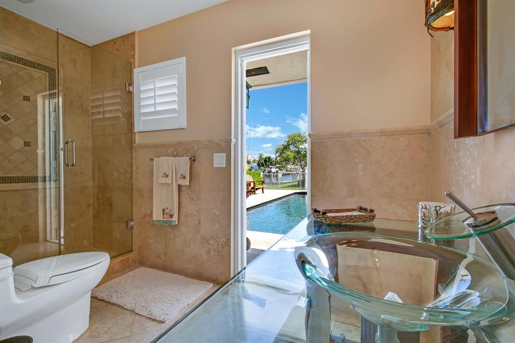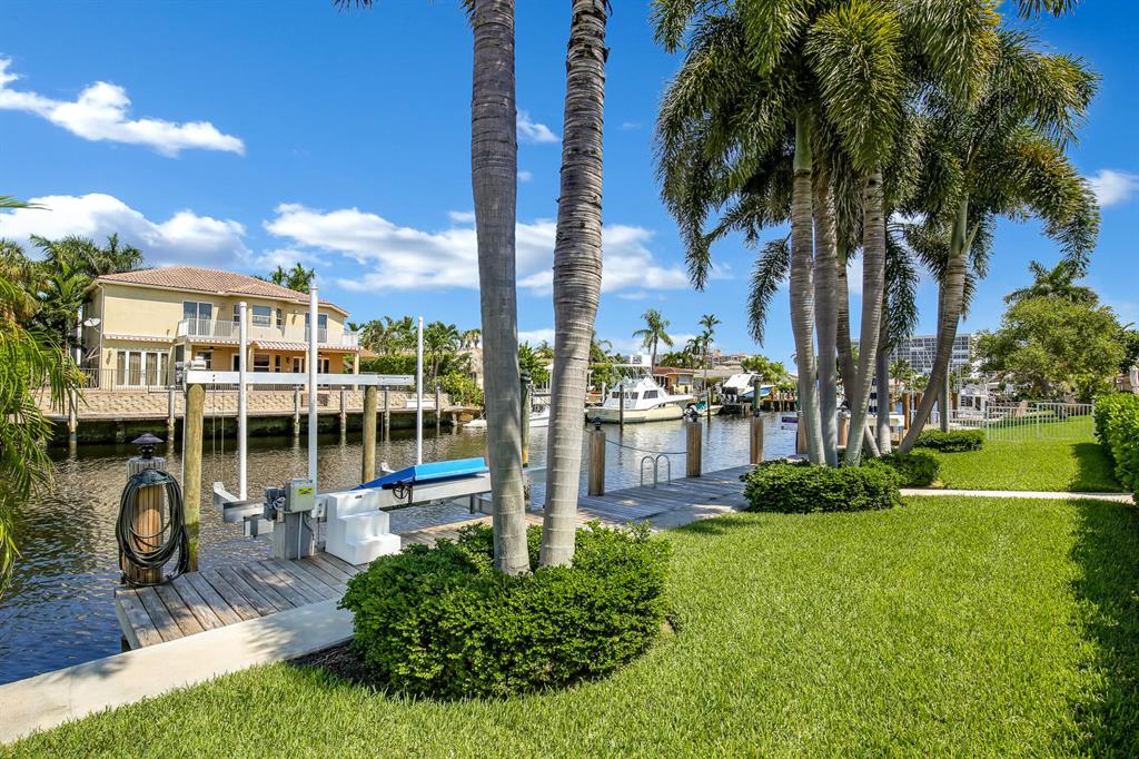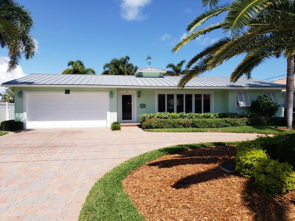 This home is a ''10'' without a doubt and you will agree when you view the dedication given to assuring every chosen detail adds to the beauty and the comfort of this spectacular property. Marble flooring throughout the home, inside and out. The stunning pool/dock area all in marble as well. Completely remodeled kitchen and bathrooms, plantation shutters, impact pocket door sliders doors and impact windows throughout Love the tin roof. Newer A/C and ducts in the attic in 2016 with 10 year warranty. Pool redone in Pebble Tec with 25 year warranty. New water heater, sprinkler system, dock is 2 yrs new with electric & water, batter piling sea wall, property fenced in elegant white iron. Pompano Beach is ''the happening place'' with golf, tennis, new restaurants & shopping coming.
