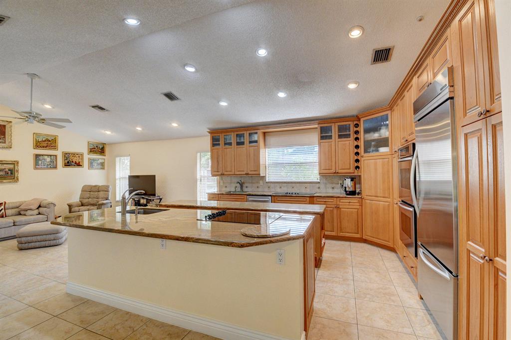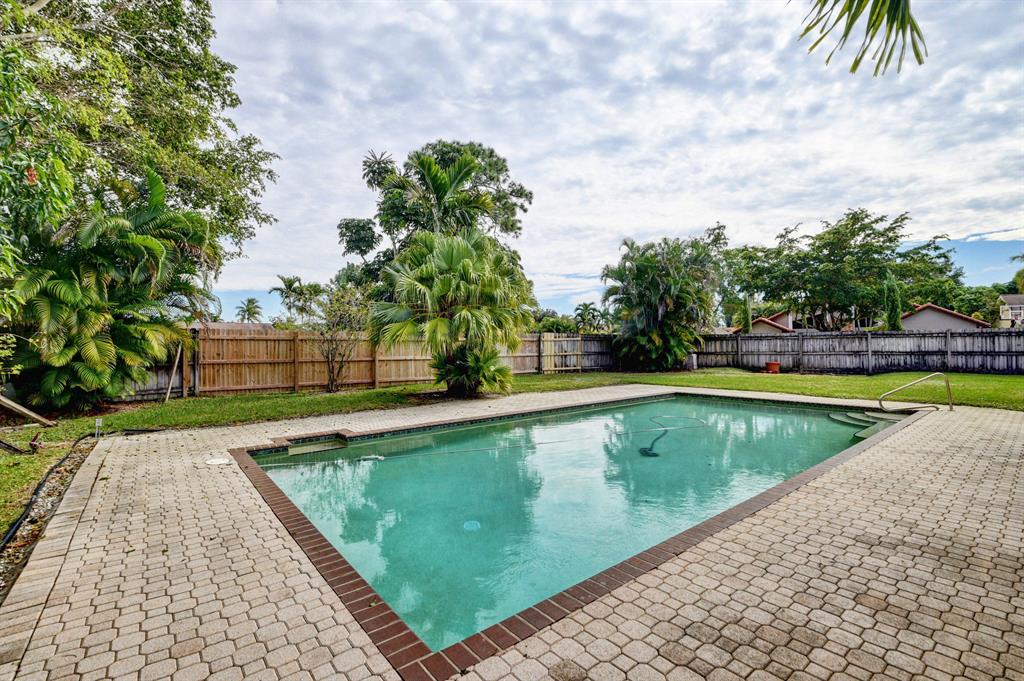 Great Location! Single level, spacious home situated on 1/3 acre corner lot. Open Kitchen with 2 ovens, 2 sinks, & 2 stoves, Granite countertops and stainless steel appliances. Cathedral ceilings, newly renovated master bath with Jacuzzi & separate shower, formal dining room, 2 A/C zones, new electrical panels, newer water heater. New hurricane approved garage door and main entrance front door. Big back yard with a 36 X 18 pool and a screened patio, plenty of storage. Walk to House of worship!!