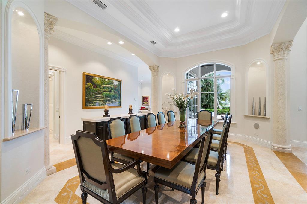 See this 9,808SF European-inspired estate with views of the 18th fairway of the Fazio II course. Recently undertaken renovations include: a new state-of-the-art theater system controllable from your phone, redesigned laundry room with brand new state-of-the-art appliances, new quartzite countertops, new outdoor high-end BBQ grill, refinished wood office floor, and new fixtures and hardware throughout! Complementing previous renovations undertaken, this estate exudes luxury with a grand rotunda foyer, marble circular staircase, two-story living room, private movie theater, game room, exquisite personal office, Subzero/Wolf appliances, and spectacular views. May be purchased furnished (some exceptions) or unfurnished. Information herein deemed reliable but not guaranteed & subject to err