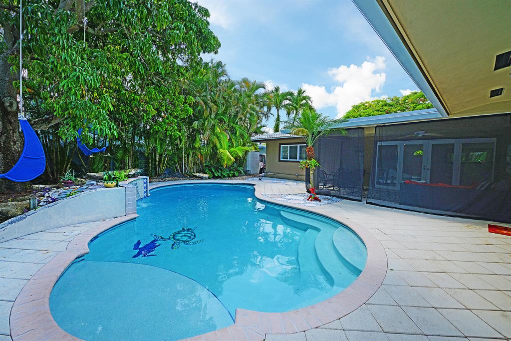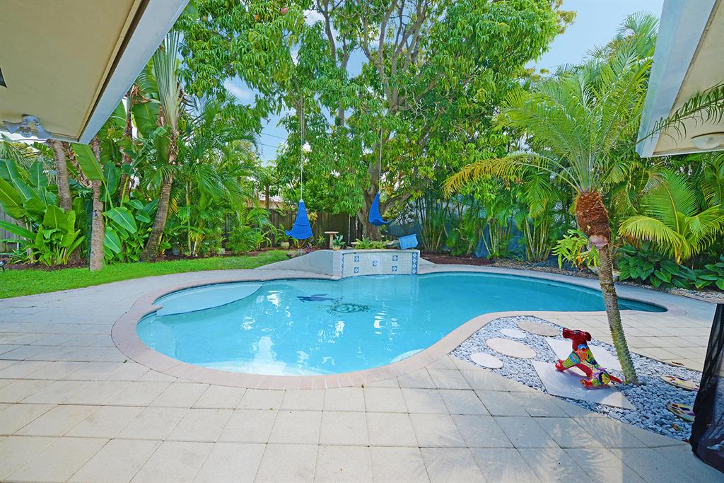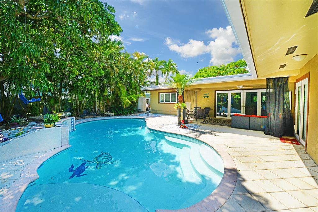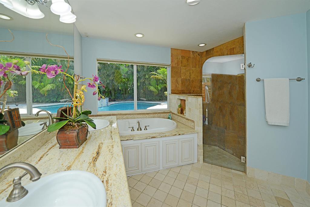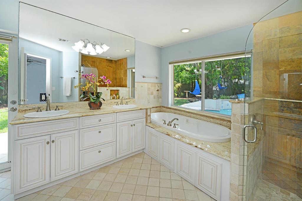 Updated SE Boca 3-4 Bedrooms* (Split layout w/ 2 master Bedrooms), 3 baths, Free form pool w/waterfall, Spacious kitchen w/ island, wall oven & cooktop; Large Master BR Suite (19'x15') has a sitting area, walk-in closet, & Large master bath w/ jacuzzi tub & walk-in shower; Indoor laundry room w/ front load washer/dryer, Impact windows & doors (excluding front door/garage door), Surround sound wiring, Outdoor hot shower w/ privacy enclosure & utility sink; Paver driveway, patio & walkways, Covered patio w/ retractable magnetic screen panels, Lush tropical landscaping, Large storage shed & fenced yard. Short walk to Addison Mizner Elementary, Excellent Schools!!!*Professionally converted garage to utility storage & 4th Br/Den/Office. Garage door is still in place & wall can be removed.