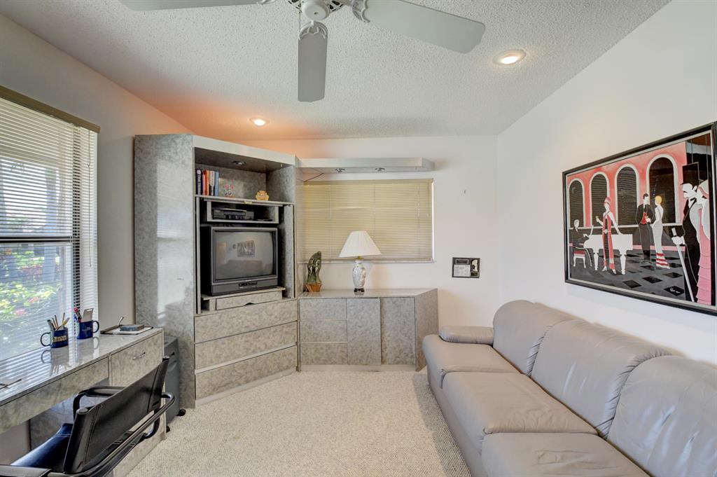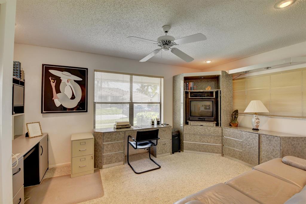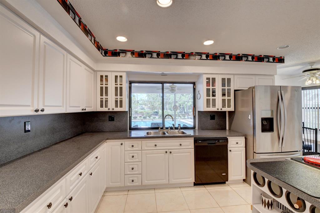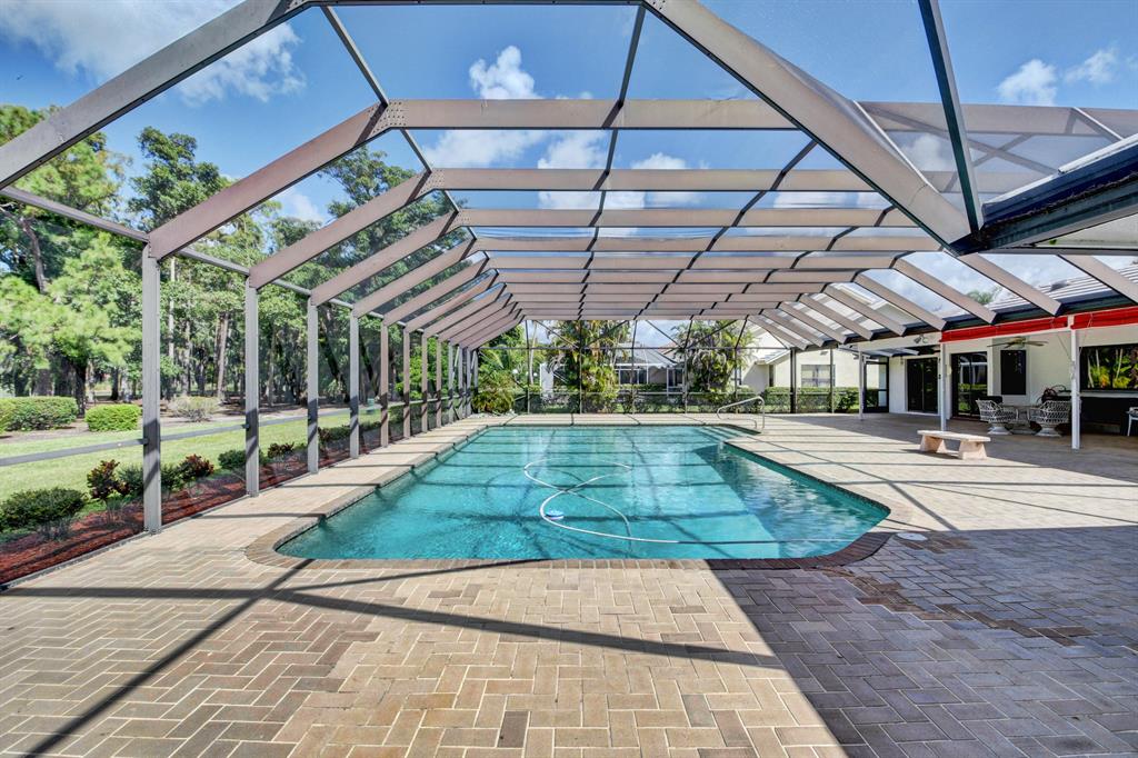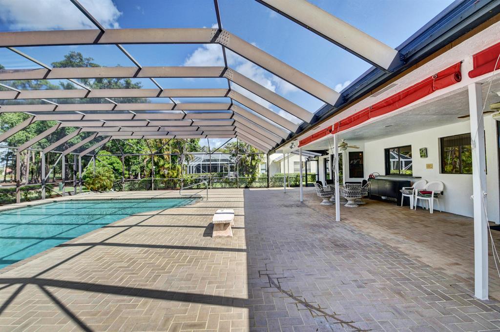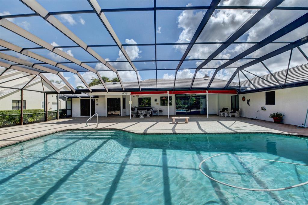 Outstanding 4/3.5/3 Pool Home 3000sf in Boca Woods Country Club. Spacious split floor plan features several recent upgrades. Freshly painted. Incredible screened 40 x 25 chlorine pool overlooking the golf course and lake. Membership is mandatory. Golf Equity is $30,000-refundable upon sale of your home, Non-refundable $30,000 initiation fee, Dues $14,850+tax per year, Dining Room $1500+tax per year, Service Charge $107/month-no tipping, HOA $903 per quarter which includes cable & internet, 2 golf courses, common areas, security, fitness center and trainers and much much more!