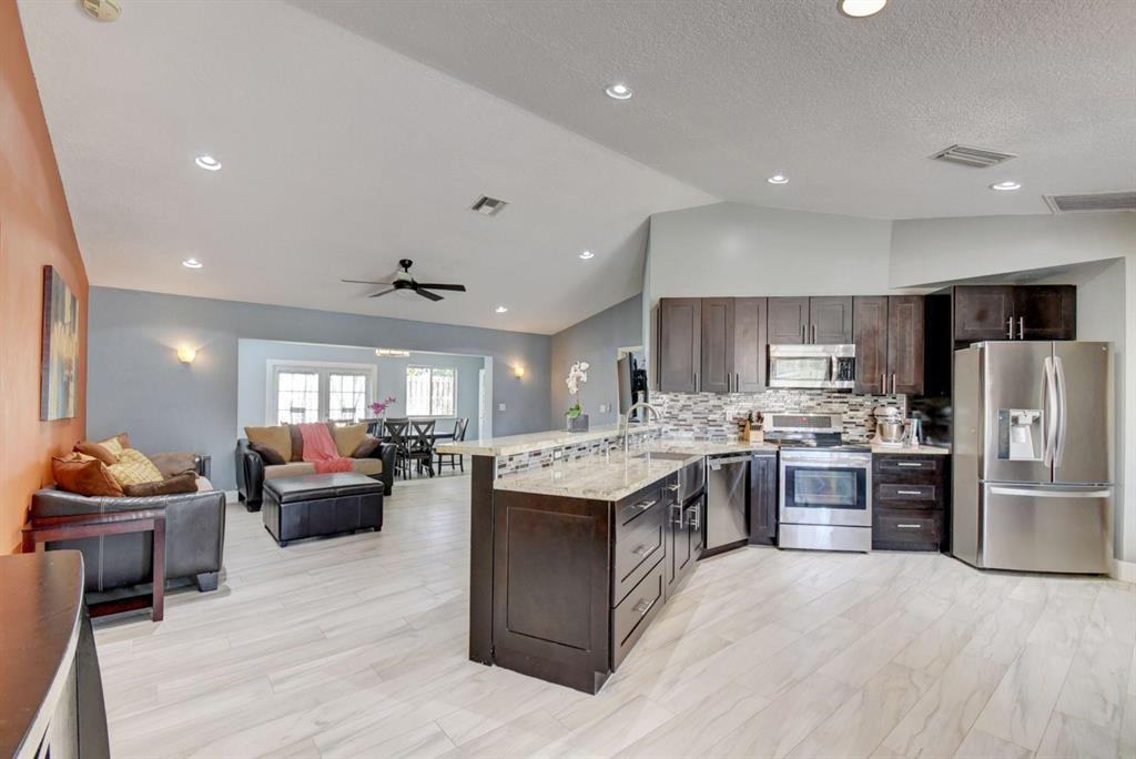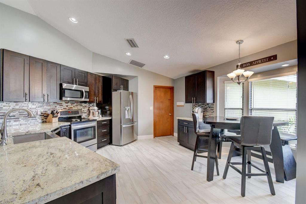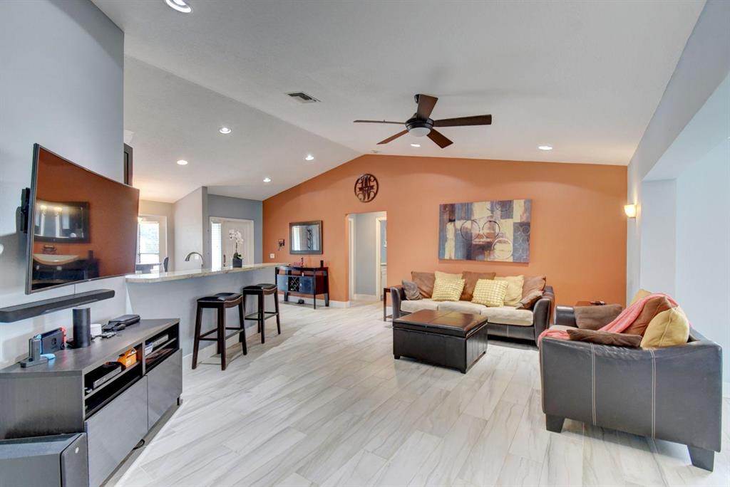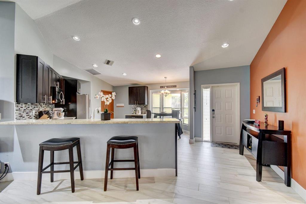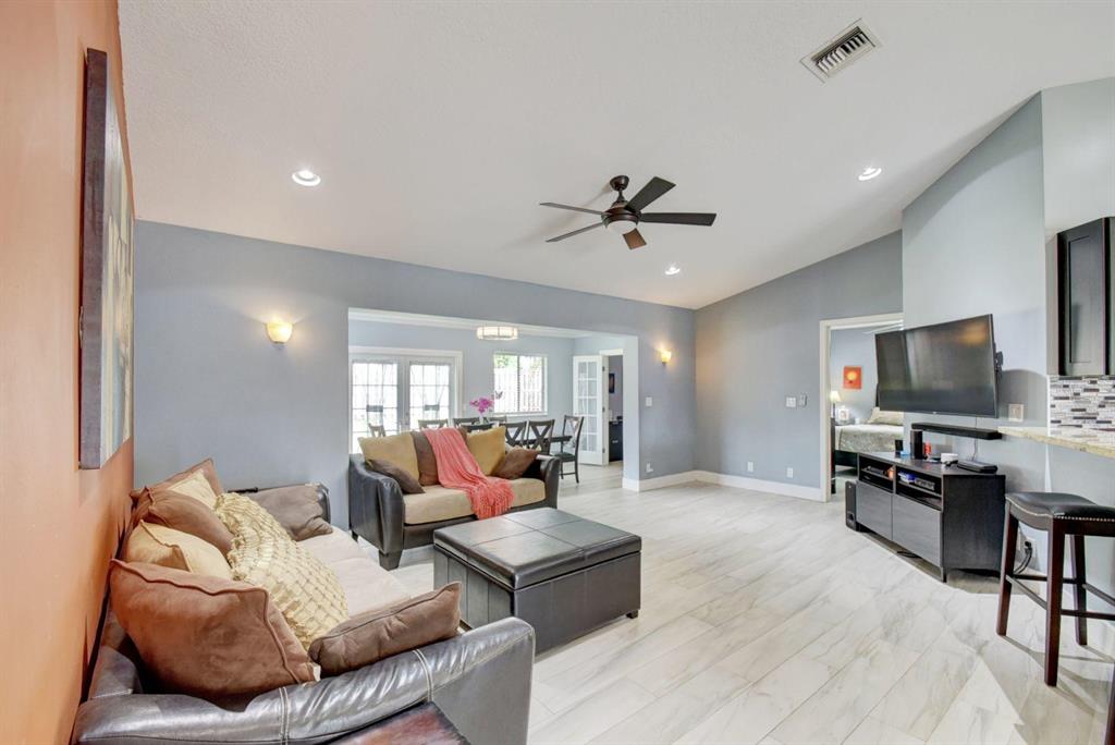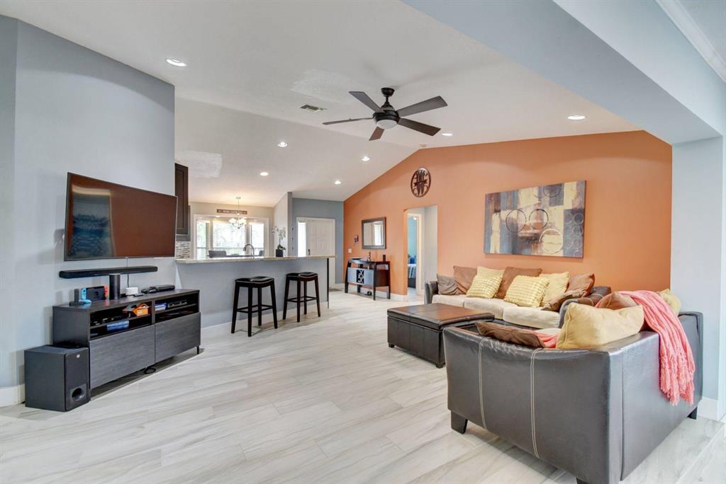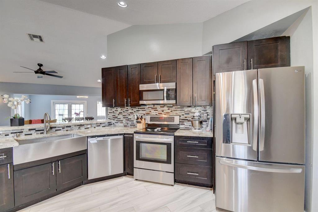 Gorgeous 3 bed+ Den, 2 bath, 2 car garage, Bright and open floor plan with split bedrooms, Modern tile throughout the house. Spectacular open kitchen totally renovated, wood cabinets, granite counter tops, farmhouse kitchen sink, new stainless steel appliances. Private fenced over-sized backyard and patio, with fenced space on the side for a boat or work truck with its own driveway. HOA fees only $62 a month. The Community offers Club house, pool and spa pool.