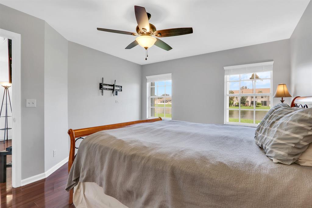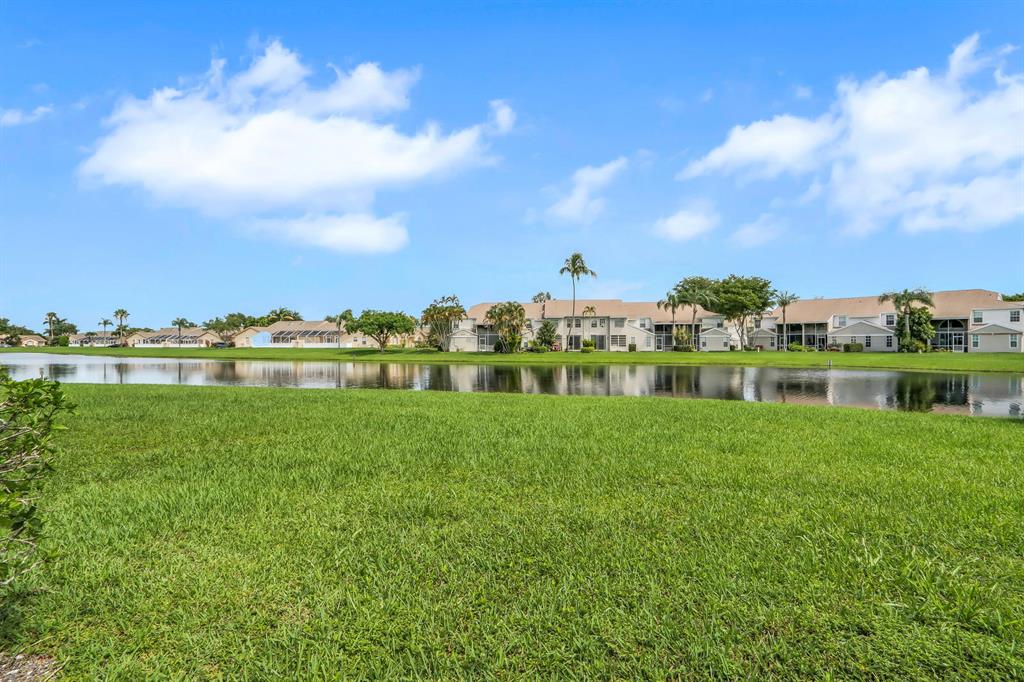 Beautiful 3 bedroom 2.5 bath townhouse with views of the water from every room. Master bedroom situated on the 1st floor with renovated master bathroom. Stainless steel appliances. Open loft on the 2nd floors with two bedrooms and a bath. Garage has been converted into a den/storage room, which can easily be converted back to a garage by new owner. Newly renovated tile in the entrance way and back door. This home is located close to the clubhouse with a pool, fitness room, tennis court, and basketball court. Boca Gardens is a pet friendly community.