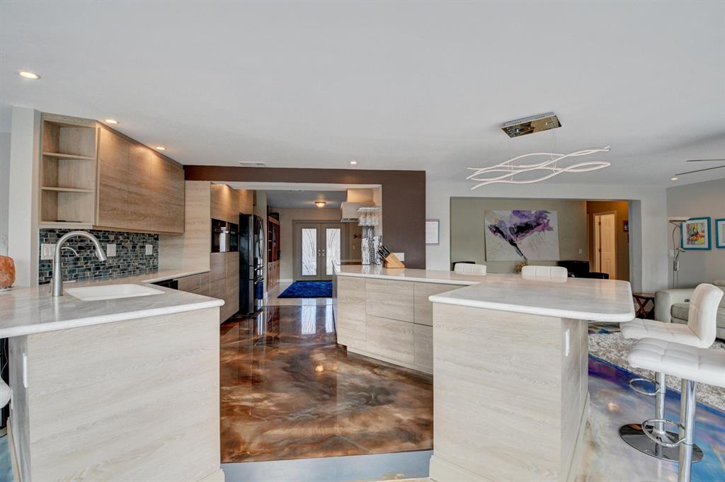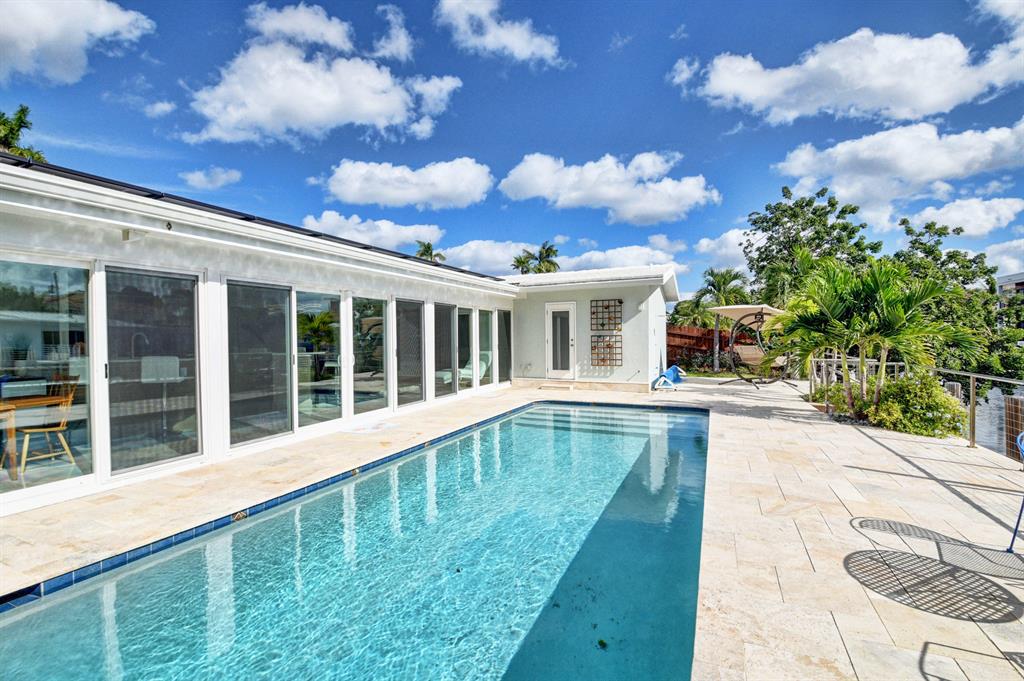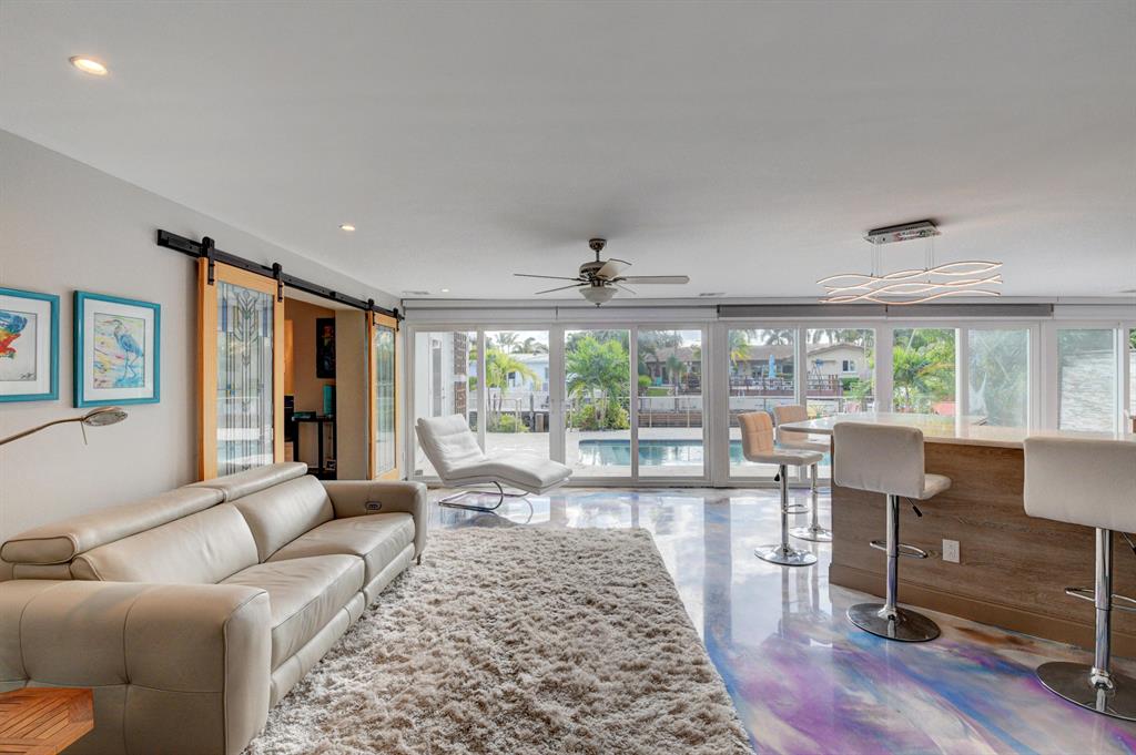 A unique California style blend of contemporary and natural design with beautiful waterfront views awaits you at this recently renovated private oasis. This is an entertainer's dream with an open floor plan that creates a synonymous indoor/outdoor living space with a tranquil waterwall, mature landscaping and stunning water and pool views. A custom chef's kitchen is a focal point with its open concept, endless counter and storage space along with high-end appliances. 14 raised herb beds with rain water catchers provide farm to table freshness. Bright and light, with a touch of color, the epoxy and terrazzo floors throughout add to the beauty of this home. Eco-friendly updates, includes solar cooling/heating, impact windows & doors and a rain water collection system that makes utility ..