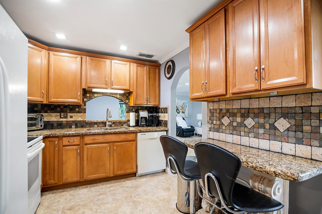 GREAT LOCATION AND NEXT TO LARGE PARKING AREA AND NEXT DOOR TO THE POOL. (FEELS LIKE YOU OWN THE POOL AREA). VERY LOW HOA AND NEXT TO A RATED SCHOOLS. THIS IS A MUST SEE PROPERTY. NEW GRANITE COUNTER TOPS & MAPLE WOOD CABS IN PASS-THRU-KITCHEN, CROWN MOLDING THROUGHOUT, A/C IS 3 YEARS OLD, BRAND NEW BATHS IN MASTER. NEW 18 x 18 PORCELAIN TILE THROUGHOUT EXCEPT MASTER W/ NEW WOOD FLOORING, RECESSED LIGHTING FOR A VERY BRIGHT AND CLASSY LOOK. HUGE & PRIVATE FENCED YARD. NEW SMOOTH TOP RANGE, NEW DISHWASHER & ICE/WATER DOOR REFRIGERATOR AND RENOVATED BATHS. FRESH PAINT INSIDE AND OUTSIDE, NOTHING HAS BEEN MISSED. The refrigerator in laundry room and chandelier in living room does not convey.