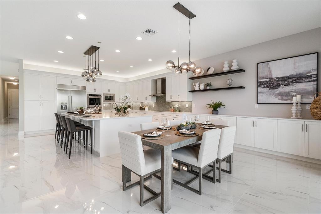 This brand new home is complete and partially furnished! Great Floor plan master plus 3 bedrooms upstairs with loft & 5th bedroom down. Custom pool with sunshelf bubbler & umbrella sleeve. Whole house impact glass windows & doors. Gourmet kitchen includes KitchenAid stainless steel appliances with 36'' built-in cooktop, 30'' double oven, a 36'' chimney style hood, built In microwave and 6 cycle/5 options stainless steel dishwasher, 48'' side by side refrigerator, Artic White Shaker cabinets with crown molding & light valance & lighting above & below cabinets, Organic white quartz countertop with glass linear tiles backsplash, stainless steel single bowl under mount sink, Moen faucet. 24 x 24 porcelain polished tiles throughout living areas. Red oak contemporary Stair Rail and wood stairs