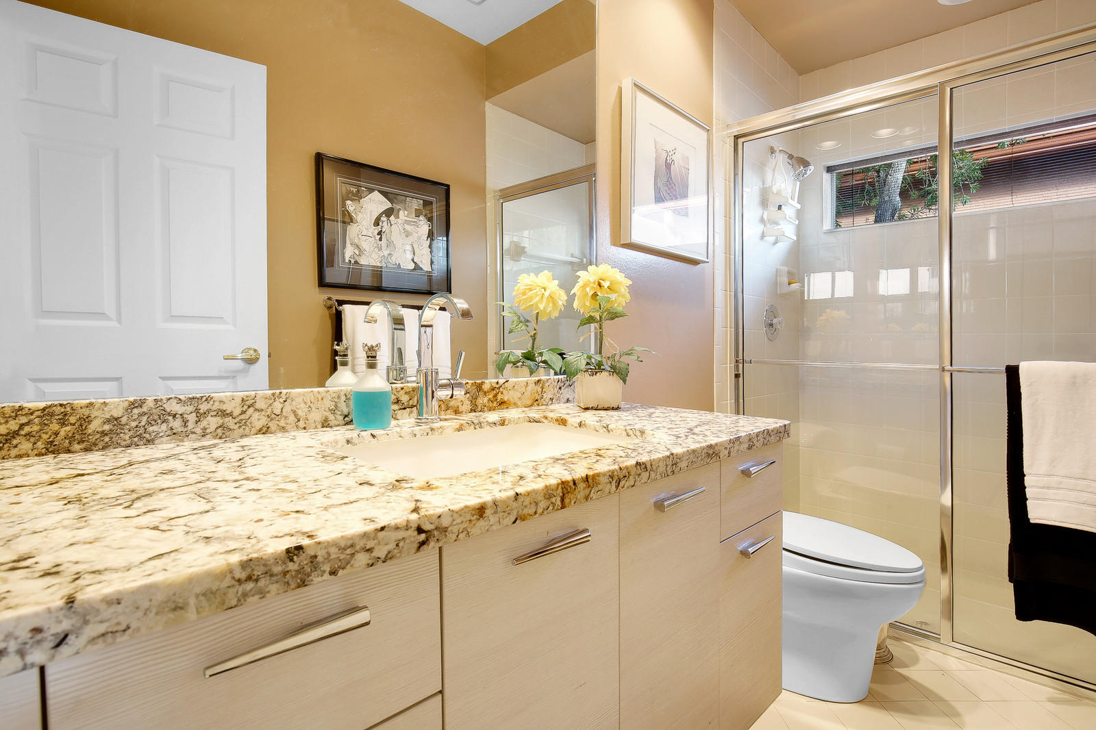 Fabulous one story home in popular Costa Del Sol subdivision. Gorgeous long wrap around lake views. Excellent updated condition. Kitchen has been redesigned, one year ago, with modern touches and boasts quality unique quartz counters. Appliances are only 5 years old. Tile throughout with many upgrades and architectural columns make this home very special. Split bedrooms and family room and living room. Built in desk in the second bedroom. Unbelievable unique marble master bathroom other baths are also redone. A/C 1 year old. New extra refrigerator in garage. Decorative molding. 3 TV's included and all decorator fans and fixtures included. Some furniture negotiable. This is truly a wonderful home. Membership optional.