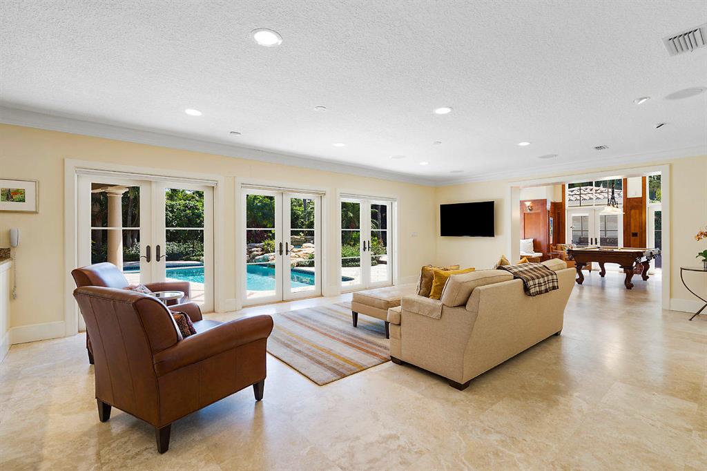 Relish the timeless charm and relaxed coastal style of this classic Florida house a block away from the beach located in the Spanish River Land. This lavish residence is a rare luxury retreat with comforts, conveniences, technologies, and pristine finishes that make for one unforgettable home. The single story residence sits on 100 x150 foot lot, and has a phenomenal floor plan. There is a 3 way split bedroom boasting a total of 5 bedrooms, 4.5 bathrooms, large kitchen area, formal dining, separate living room, family room, and a bonus game room with a wet bar. The outdoor living area is breathtaking with a free form pool, tranquil waterfall, summer kitchen, a large covered patio area, beautifully landscaped front and back yard, and fully fenced in back yard. The upgrades and features